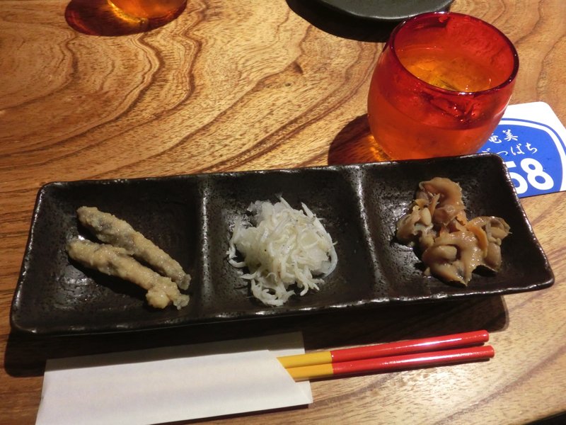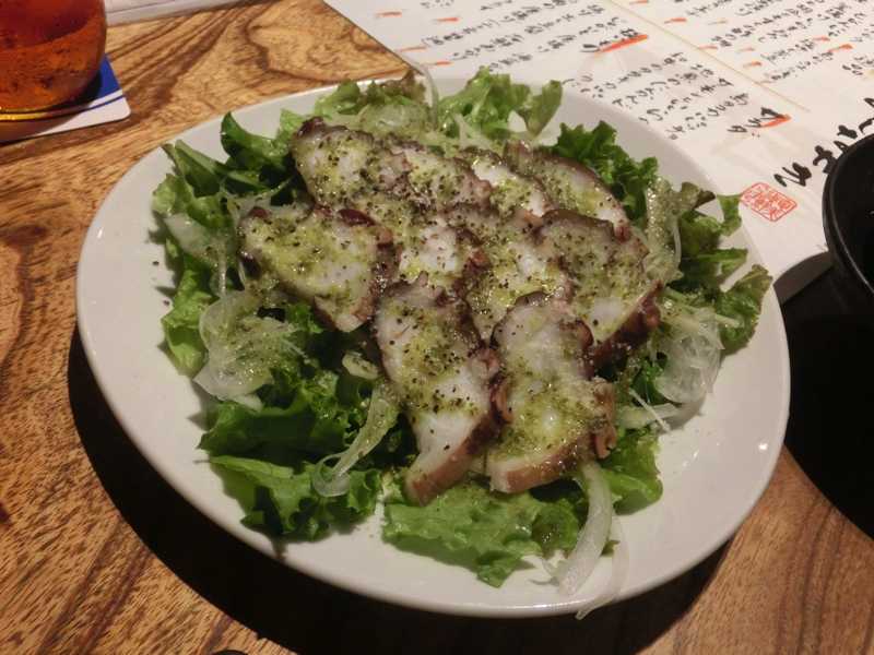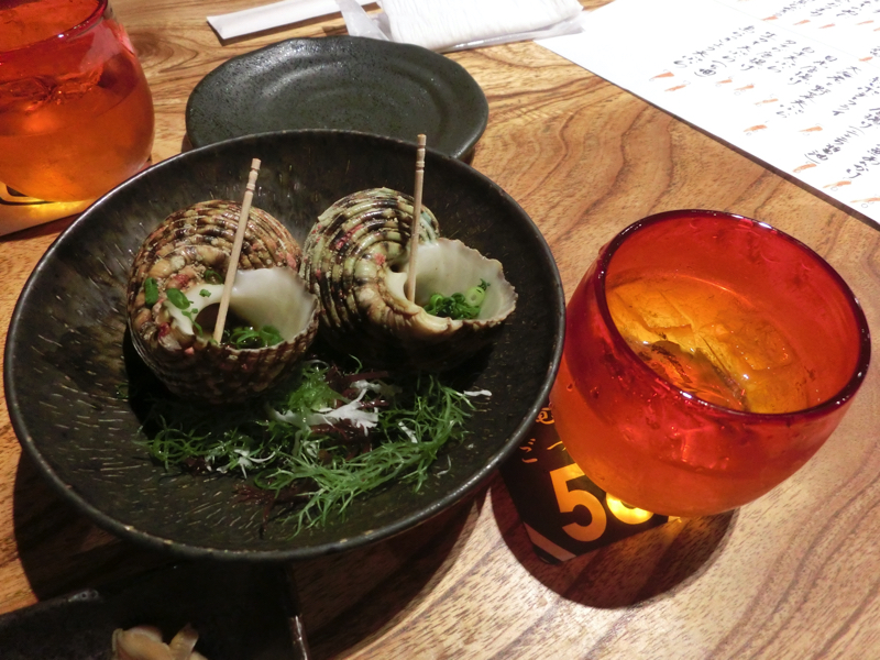 ホテル到着。今日はまだ明るいうちに帰ってきたこともあり、ホテルの駐車場に停めることができました。部屋で少し休憩して、夜ごはんへ。ホテル近くをウロウロしながらお店探しだ。昼がしっかりだったのでそこまで空腹でもなく、良さげな店に入ると満席で、もう一軒入ると喫煙可能で、はてどうしよう。ホテルのすぐ近くにまさに昨日オープンしていたお店があるので、そこにしましょうか。海鮮ごっぱちというそのお店は、そこそこ人が入っている感じ。今日は最初から黒糖焼酎でお通しに続いては島サザエ。突起のないツルッとした貝殻なのでサザエっぽくはないが、身は確かにサザエ。焼酎に合いますね。お刺身には夜光貝があり、これはコリコリした歯ごたえが楽しめる。そして島タコのカルパッチョ、しっかりした食感のタコにジェノベーゼソースがおいしいです。まだまだ食べたいものはあるが、今日はこのくらいでいいかな。ごちそうさまでした。