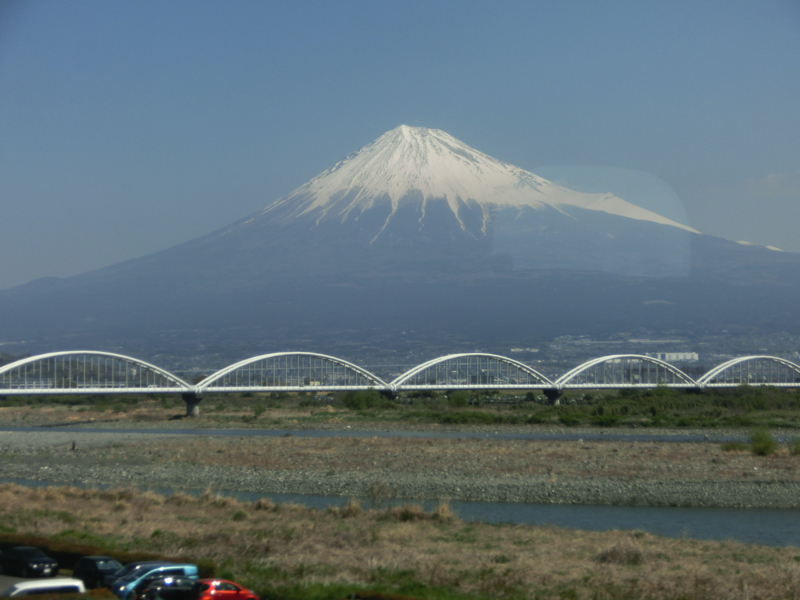 世の中が少し落ち着いてきた今、ニッポンの春を楽しもう。外国人観光客がほぼいない今のうちに楽しんでおこうということで、やっぱり桜と富士山かな。久しぶりに東京方面の新幹線に乗る。のぞみで名古屋まで行き、こだまに乗り換えて三島まで。静岡駅を過ぎてトンネルを抜けると、そこには富士川越しの富士山の絶景。このあたりの景色が一番キレイかな。新富士駅の前後は工場や防音壁が多くなかなかいい感じに撮るには難しい。新富士と三島駅の間くらいでまたいい感じで見えるようになる。空気は若干霞んでいるがきれいに見えてよかった。三島駅に到着し、まずはレンタカー屋さんに向かい、荷物を預かっていただく。