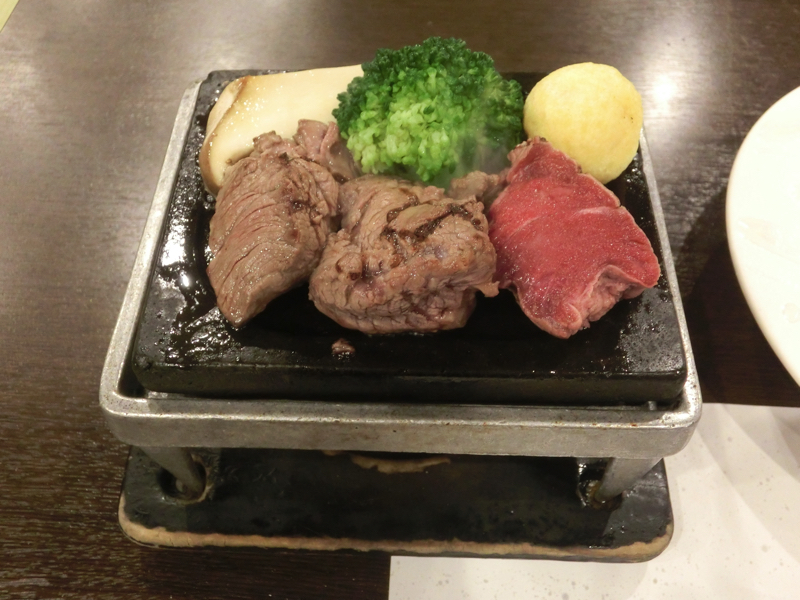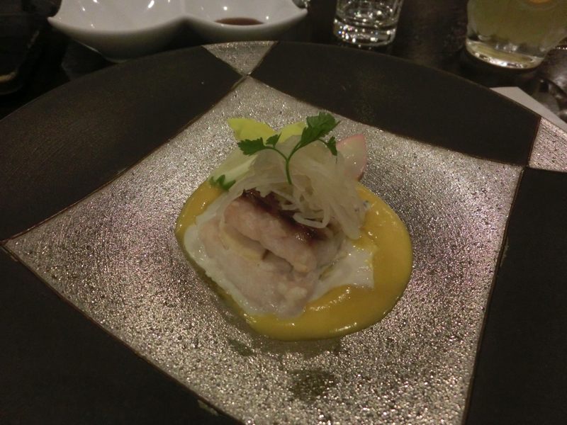 18時になり、夜ごはんへ。富士山が見える食事処にて地元や駿河湾などの食材をいただきます。ご時世柄、テーブルもゆったりしているのがいいな。飲み物は日本酒と緑茶ハイボールにしましょう。 ・お通し 蓬豆腐 ・酢の物 鯛絹田巻き ・八 寸 赤烏賊東京独活の柚子味噌和え/穴子手鞠寿司/蛍烏賊わさび漬け/富士桜ポークエリンギ巻き ・お造り 海の幸盛り合わせ ・中 皿 鯛塩麹焼き南京ソース ・お凌ぎ 梅そうめん ・台の物 牛ヒレ溶岩焼き