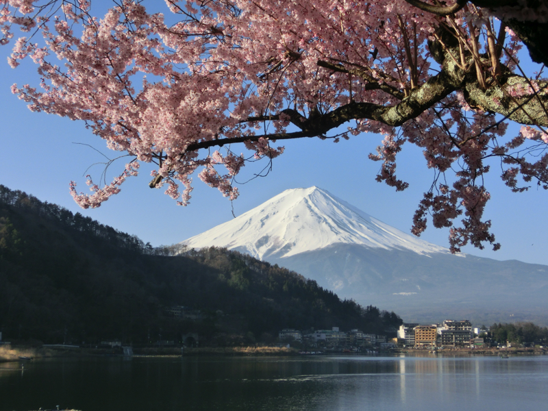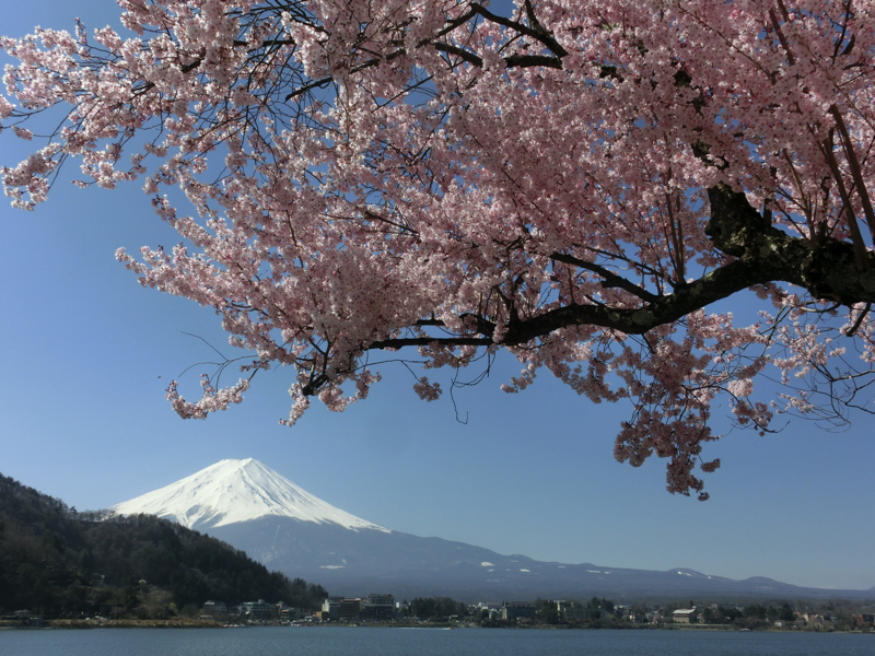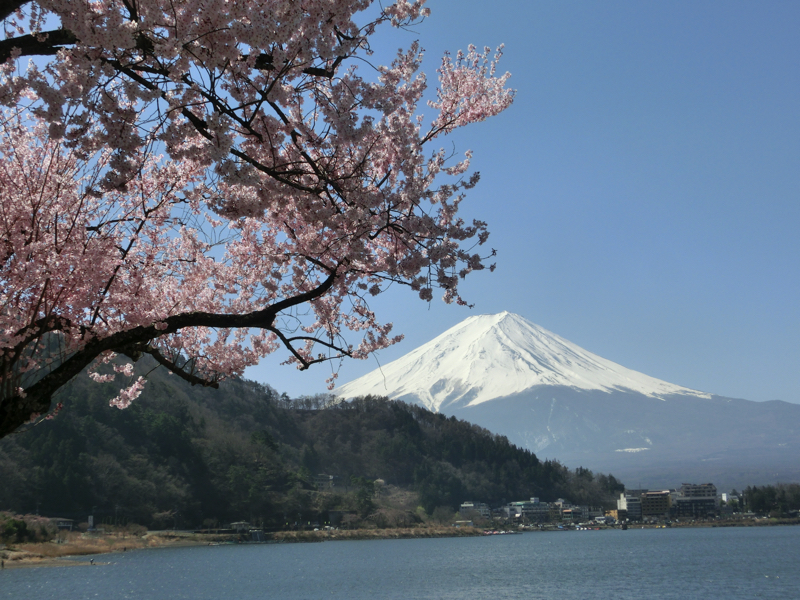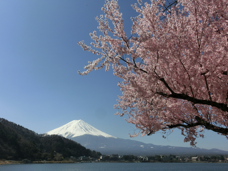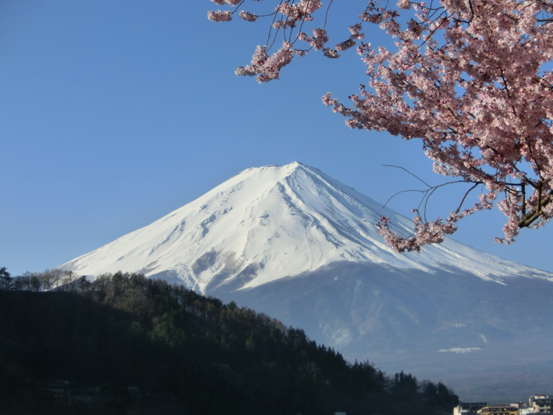 朝ごはんまでまだ時間がある。ホテルの前に桜が一本あり、ちょうどいい感じに満開だ。その周りで三脚を持って写真を撮っている人がいるので、行ってみよう。富士山と桜、そして河口湖。なんて絶景なんだ。見始めの頃はまだ朝日が桜には当たっていなかったが、しばらくするとだんだんと光が桜に当たるようになってきた。やっぱり明るいほうが桜色がはっきり見えてきれいだな。いい感じの写真が撮れたところで少し歩いたところにも満開の桜があり、それもまたいい感じ。湖畔にはまだこれから満開を迎える桜もあるので、しばらく楽しめそうだね。