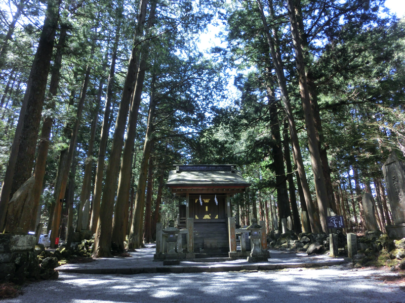 境内の奥へと行くと、登山道吉田口が始まる。ここをずっと進むと富士登山へとつながるわけです。登山道を数分だけ歩くと、大塚丘に到着。ここは、北口本宮富士浅間神社の起源と言われている。しっかりと、お参りしましょう。境内へと戻ると祠がたくさん並んでいて、その先にあるのが諏訪神社。この浅間神社の中で、江戸時代からの姿を残すのはこの拝殿だけらしいです。しっかりとお参りしましょう