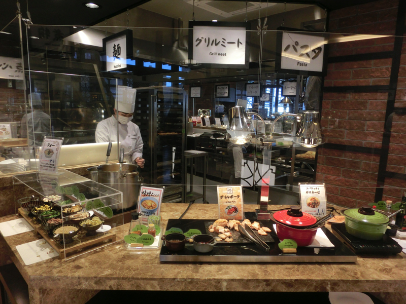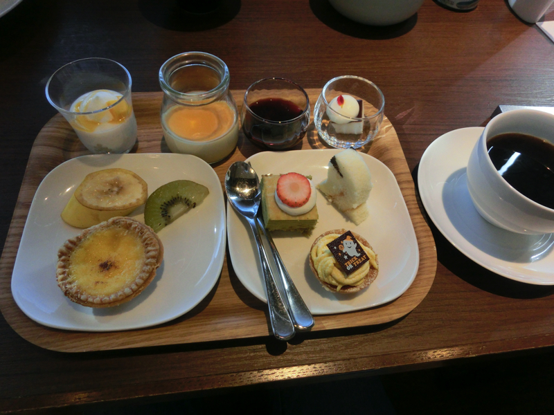 もうすでに満腹に近いが、ごはんも食べたい。再びまぐろ・いか、あとはたらこにとろろで海鮮丼風にしてみる。さて、締めのデザート類も頂かざるをえまい。フルーツやケーキ、プリンにティラミスなどやっぱりいろいろ取ってしまうなあ。コーヒーとともに完食し、もうこれで超満腹。もう何も入りません。ごちそうさまでした。