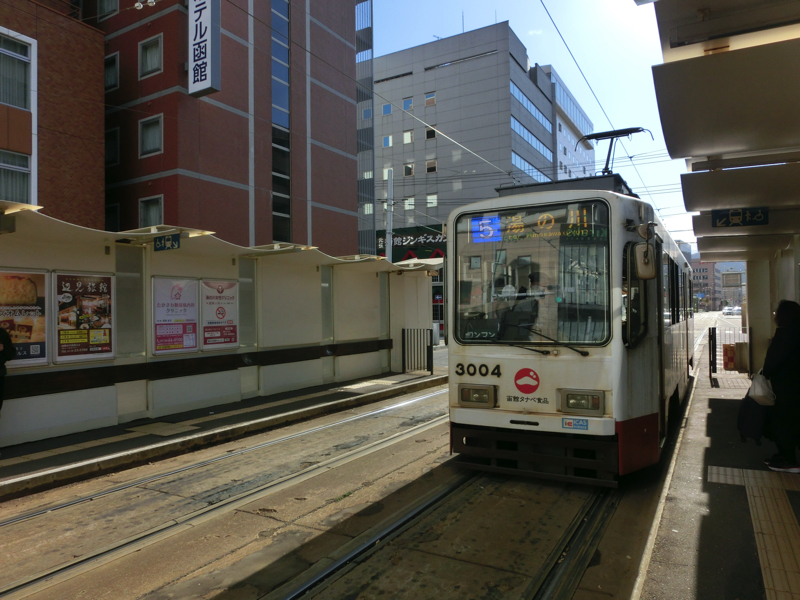部屋に戻るが、あまりの満腹に食休みも苦しいくらい。でかけますか。函館駅のお土産屋さんや近くのスーパーを見て回るが、やっぱり満腹すぎておみやげ探しも苦しいくらい。お刺身とかお惣菜とか見てもピンとこない・・・これは昼ごはんいらないな。2階のイートインスペースの横で少し休憩して、ちょっと落ち着いてきたかな。こうなるとゆっくりでも動いている方がまだ楽なので、函館駅前から路面電車に乗って五稜郭へと向かいますか。
