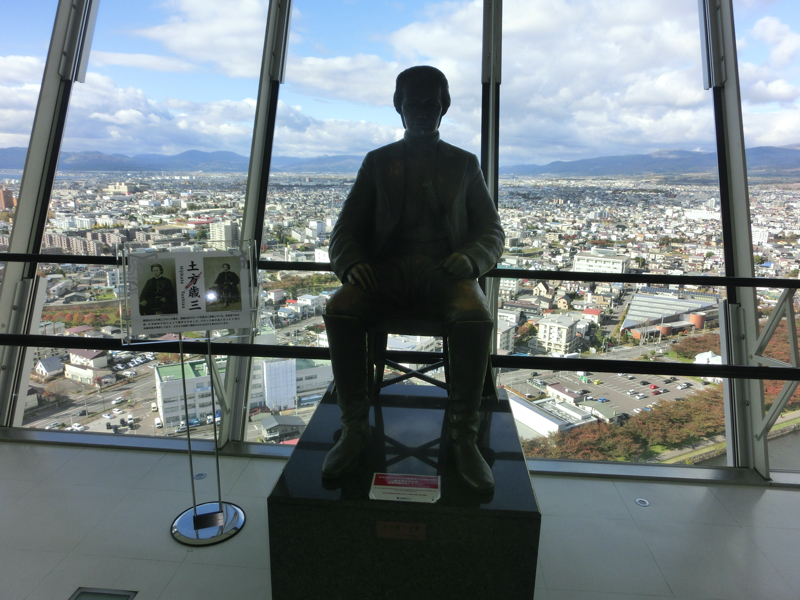 五稜郭公園駅までは15分ほど。ここから10分ほど歩くと「五稜郭タワー」に到着だ。入場料は一人900円で、まずは90メートルの高さにある展望台へ。ここからは五稜郭の全体を見ることができる。ちょうど今は紅葉の時期だが、桜の季節や雪の季節も良さそうだ。五稜郭は、黒船来航により日米和親条約が締結され、そのときに開港された箱館の防衛強化のために造られたもの。その後、幕末の動乱において榎本武揚や土方歳三を要する旧幕府軍が新政府軍に降伏したといった歴史の展示がありました。去年の大河「青天を衝け」でも描かれてたよね。