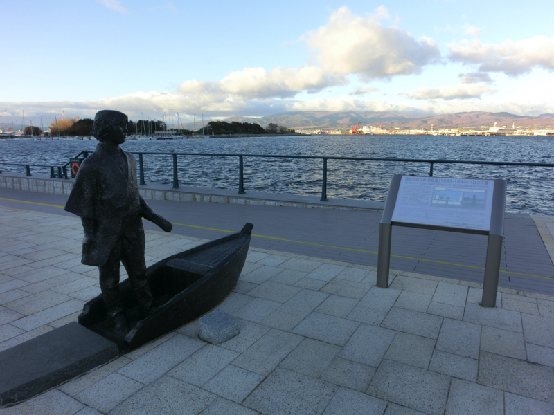 まだ全然お腹が減らない。やっぱり昼抜きだな。北海道のコンビニ、セイコーマートがあったので入ってみよう。普段見ないような商品ラインナップの中、バタークッキーやいろんなカップラーメンなど、ここならではのものを買ってみよう。山わさびの小瓶もあったしね。さて、路面電車に乗り、函館駅へと戻る。さらに3駅ほど先へ進み、十字街駅で降りる。ここから少し歩くと赤レンガ倉庫のエリアだ。お店は後で見るとして、海沿いを歩いて行こう。八幡坂まで散策したところに、新島襄先生の出国の碑が。ここ函館から小舟に乗り、アメリカ商船にたどり着いたことで出国に成功したとのことで、激動の時代の中での強い意志を感じる。