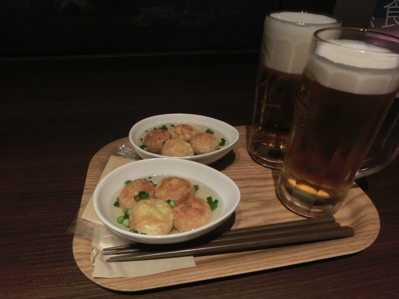 ホテルに戻り、最上階へ。大浴場の入口前にバーがあり、ここで軽食がいただける。「はこやき」という、イカのすり身が入った明石焼きのようなホテル名物をいただきましょう。やっぱりここはサッポロクラシックとともに。締めに丁度いいかな。朝はたくさん食べすぎたが、昼抜きで夜はそれなりに頂いて、ようやく落ち着いたかな。今日も函館をいろいろと楽しみました。