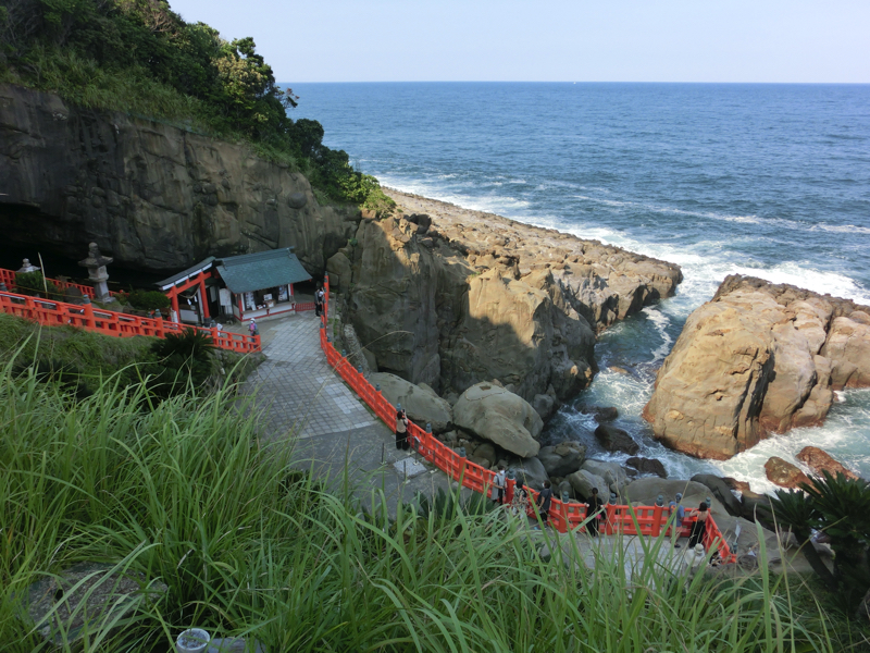 神社の本殿から荒々しい海を眺めるという不思議な景色をしっかりと見ておこう。高校の修学旅行以来、実に38年ぶりの景色を楽しみました。では行きますか。駐車場の近くのお土産屋さんをみてみる。鰹なまり節を買いました。お茶でもできたらとも思ったがそんな感じでもないし、もう一つ目的地があるので出発しましょう。