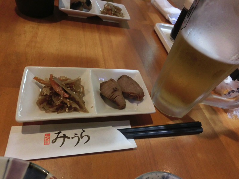 さて、夜ごはんだ。ホテルから繁華街まではちょっと遠いが、駅に近いところに良さげなお店があったのでそこに行こう。「みうら」というお店に入り、まずはビールで喉を潤す。突き出しのきんぴらとカツオの煮付け。どちらもおいしいですね。宮崎野菜サラダはちょっとドレッシングがかかり過ぎだが、野菜がおいしい。刺身でもカツオはいただきましょう。もっちりした食感がいい感じ。さて、宮崎といえばやっぱり地鶏炭火焼き。これ食べたかったやつだ。芋焼酎とともに、宮崎を味わいましょう。もっと食べたい、ということでキビナゴの天ぷらと焼き佐土原ナス。佐土原ナスは初めて食べたが、甘みがあり食べごたえがある。うまいです。大杉シイタケのホイル焼きも追加。肉厚でホクホクしておいしい。焼酎もおかわりして、満足です。