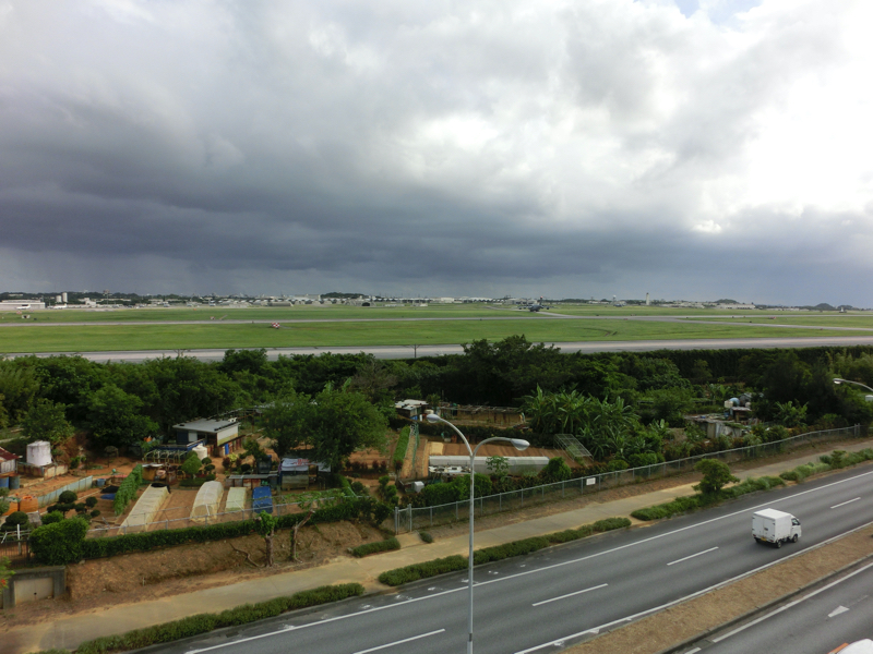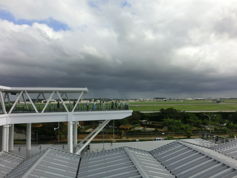 次の目的地は「道の駅かでな」。25分ほどで到着だ。嘉手納基地に関連したお土産がいろいろと売られている。ばらまき用のコーヒーちんすこうや家飲み用の島らっきょうセットをゲットするが、ここで一番の見どころは嘉手納基地が見渡せる展望台。今の時間は訓練が行われていないようだが、遠くに飛行機や戦闘機が見える。展望台には現在の騒音を示す表示があり、今は目の前の道に車が走っている程度なので66db、これはなんの問題もない。ところが訓練中は100dbを超えることもあるらしく、それは電車通過時のガード下と同じくらいらしい。沖縄基地問題はずっと課題となっているので、早くいい着地点が見つかればいいな。