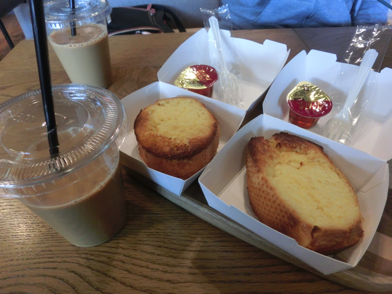 では朝ごはん。出発ゲート前にある「黒レンガCafe」に入る。ここではフレンチトーストをいただきましょう。フランスパンのフレンチトーストにメープルシロップをたっぷりかけて、カフェオレとともにいただく。たまにはこういう感じもいいですね。少しゆったりしましょうか。13時を過ぎ、そろそろ搭乗時間。では飛行機へと乗り込みますか。