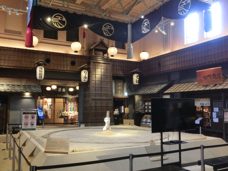 目が覚めると、今日は曇り空。天気が良ければ浜離宮にでも行ってまた桜も見ようと思ったが、曇りだし荷物をどうするかというのも悩ましいので、また次の機会に。ということで、まだ行けていなかったすみだ水族館へと行ってみよう。コンビニ朝ごはんをさらっと食べて、ホテルをチェックアウト。荷物を預かってもらいましょう。ホテルの前の道沿いに、様々なポーズをした力士像がある。両国駅の中にある「江戸NOREN」という場所には寿司やちゃんこ、うなぎやもんじゃといった江戸らしいお店があり、実物大の土俵がある。さすがにその中には入れないが、その前に同じ大きさの円が描かれており、実際の大きさを感じることができる。相撲の街らしく、面白いですね。