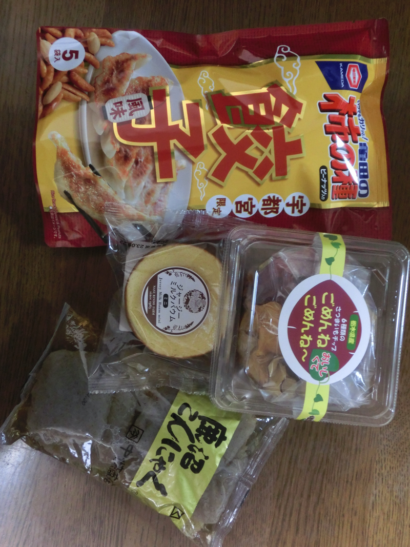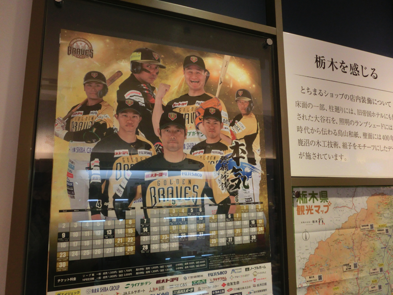 駅に向かいながらソラマチを歩いていると、「とちまるショップ」という栃木のアンテナショップがあった。せっかくなので何か買いますか。気になったのは「6種類のサツマイモのチップ」。栃木県産で6種類あるのもいいし、やっぱりごめんねごめんね〜が栃木だよね。あとは鹿沼こんにゃくにジャージー乳のバームクーヘン、宇都宮餃子味の柿の種をゲット。栃木方面はなかなか行けてないので、家で栃木の味もいろいろ楽しみましょう。店内には独立リーグの「栃木ゴールデンブレーブス」のポスターがあり、やればできる、だね。川崎ムネリンもここにいたのか。
