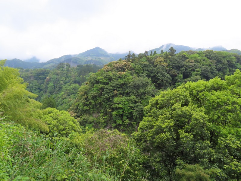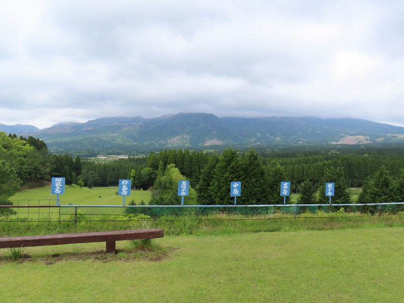 阿蘇に戻る道は、適度に起伏があって快適。1時間ほど走ったところで、道沿いにフォトスポット発見。せっかくなので、休憩がてら景色を楽しみましょう。ここは高森展望所というところで、目の前に広がる阿蘇の山には雲がかかっているので景色はそれなり。それでも、通ってきたトンネルが重なって見えるのが面白い。バイクが走ったりするのも絵になりますね。気分転換ができたところで、そろそろ行きますか。
