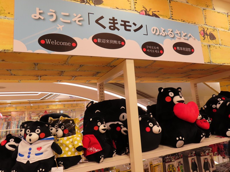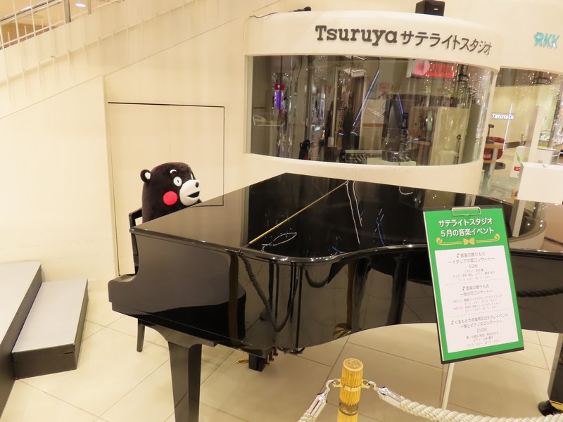 スタートが早かったので、まだ19時前。さすがにホテルに戻るにはまだ早い。下通のアーケードは多くの人が行きかっている。まだデパートも開いている時間なので、鶴屋百貨店へと行きましょう。くまモンスクエアは現在リニューアル中なので、6Fのグッズ売り場へと行こう。たくさんのぬいぐるみがあるがクオリティはいろいろ。他にもいろんなグッズがあり、見ているだけでも楽しいです。くまモンスクエアが再オープンしたらまたゆっくり来てみよう。エスカレーターを下りていくと、ピアノがあってその椅子にはをくまモンが弾いているようだ。こんな演出もまさに熊本。デパートを出ると、外は本降りの雨。ホテルまでは数分程度なので、コンビニコーヒーをゲットしてとにかくホテルへ向かいましょう。