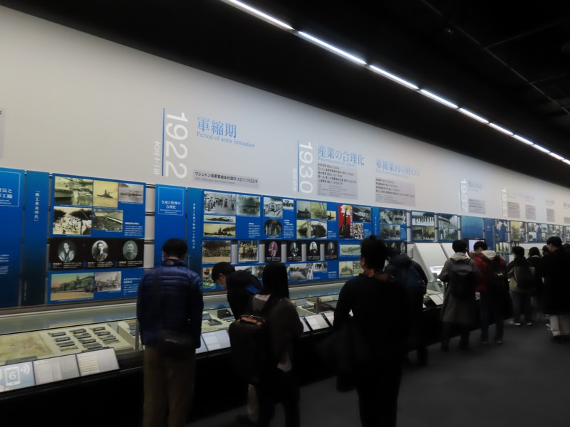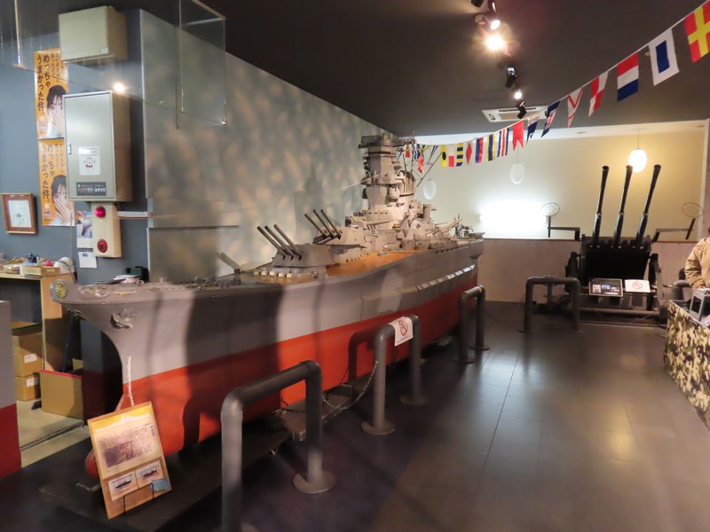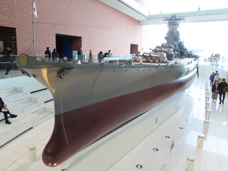 企画展示を出ると、目の前には1/10スケールの戦艦大和。昭和16年に呉海軍工廠で建造され、昭和20年に米軍の攻撃により沈没するまで太平洋戦争において各地で歴戦を重ねた。当時世界最大だった戦艦を建造した技術は各業界で応用され、戦後復興の支えになったとのこと。この巨大な模型を見ると、平和の大切さと科学技術の進歩、素晴らしさを伝えているようだ。