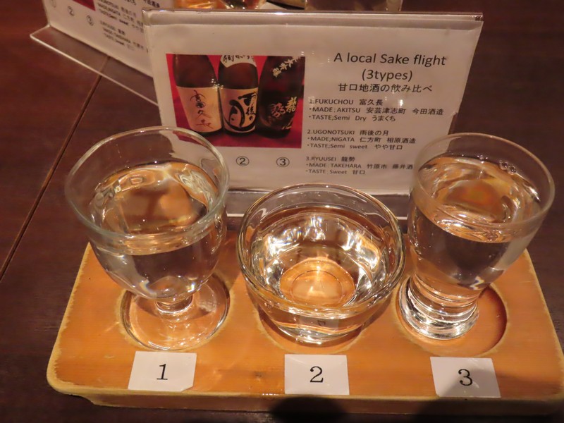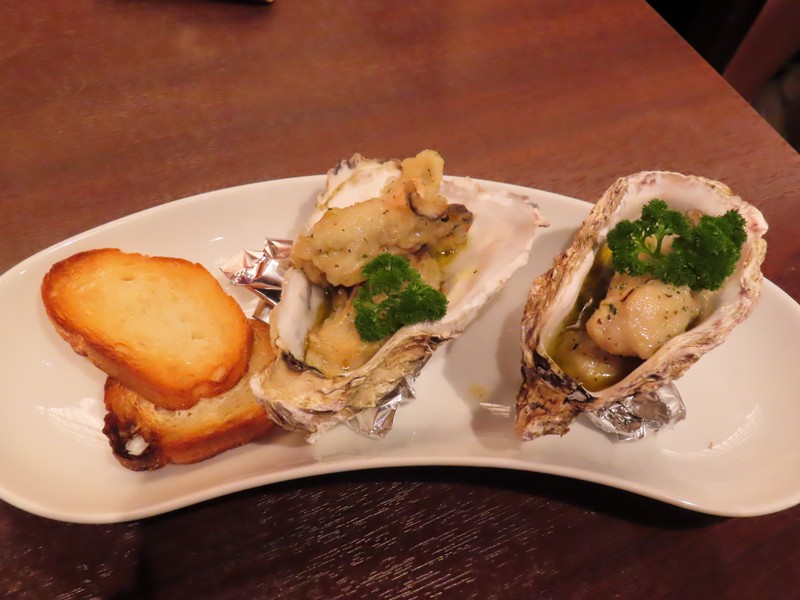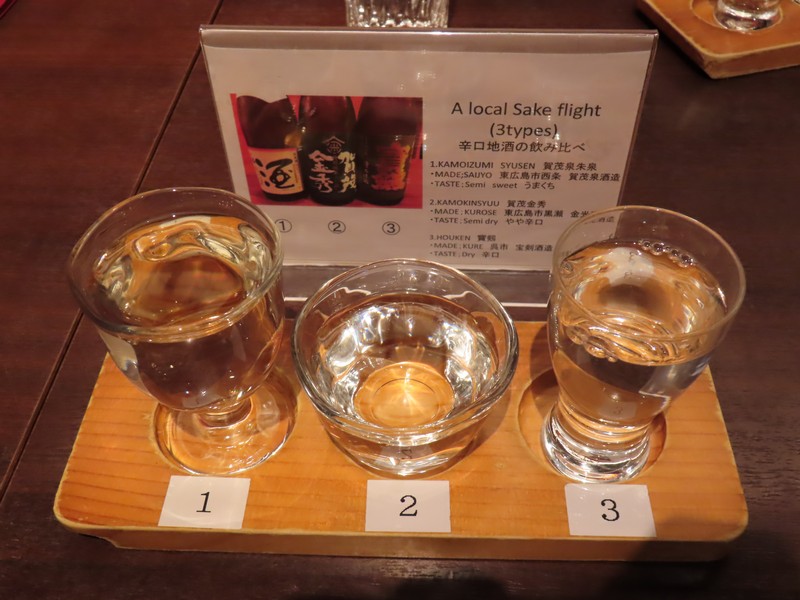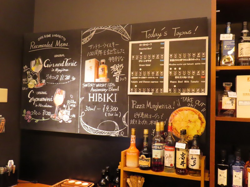 ホテルに戻り、少し休憩。今回取れた部屋はロフト形式なので、ベッドは上にある。下はテレビやソファーがあり、コンパクトにまとまった部屋。のんびりできそうだが、せっかくなのでホテルロビー横にあるバーで軽くいただきますか。カウンターに案内され、まずはワイン。広島三次産のがあるのでその白とロゼをいただきましょう。白はシャルドネで、すっきりとして少しトロピカルな味わい。ロゼはメルロー&シラーで、酸味のバランスがいい感じ。これに本日のタパスからローストビーフ、牡蠣とほうれん草のキッシュを選ぶ。初めての広島ワインとともに、おいしくいただきました。しばらくして予約のお客さんが続々入ってきて、なんだか賑やかになってきたのでそろそろ出ますか。