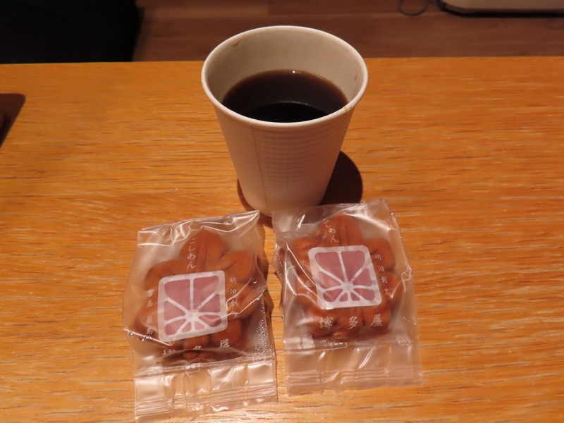 部屋に戻る前に、フリーのコーヒーを入れる。あとなんともみじ饅頭のサービスもあるので、これはいただきましょう。博多屋というお店のこしあん、定番ですね。このお店のサービスチケットももらっているので、明日行ってみましょう。部屋でののんびりデザートタイム、最高ですね。今日も一日、いろいろ楽しみました。ロフトに上がって、おやすみなさい・・・