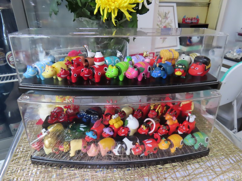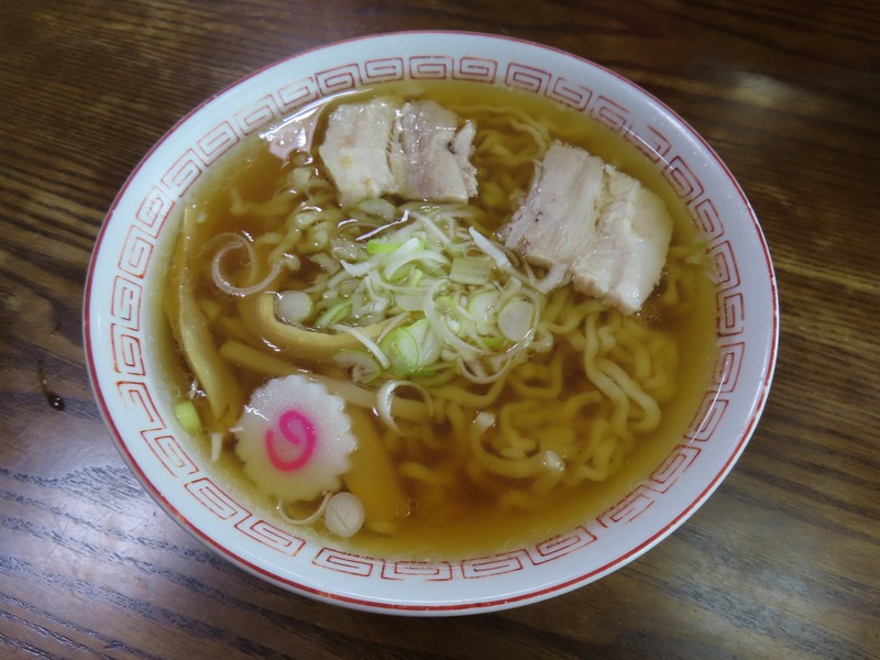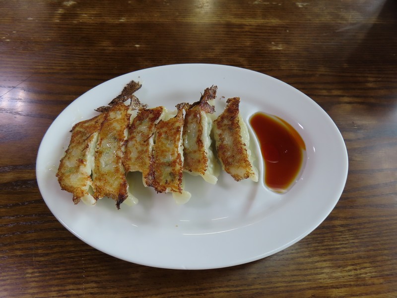 30分近く待って、中に案内されました。このくらいは想定内。ここはやはり基本の支那そば、そして餃子。シンプルに喜多方ラーメンを味わいましょう。しばらくして、まずは餃子が登場。皮が薄く、野菜多めの軽い食感。これはいくつでも食べられるタイプですね。餃子を味わっていると、続いて支那そばが登場。この縮れ面がいかにも喜多方ラーメンのイメージ。醤油味のすっきりとしたスープにメンマ・ネギ・なると・チャーシューとバランスのいい具材。おいしいです。他にもいろいろ具の入っているのもあるし、いつもは味玉は入れたいところだが喜多方ラーメンに関してはこのシンプルさが一番いい気がする。お店の中には小さな赤べこがたくさん飾られていました。赤じゃなくても赤べこと言っていいのかな。