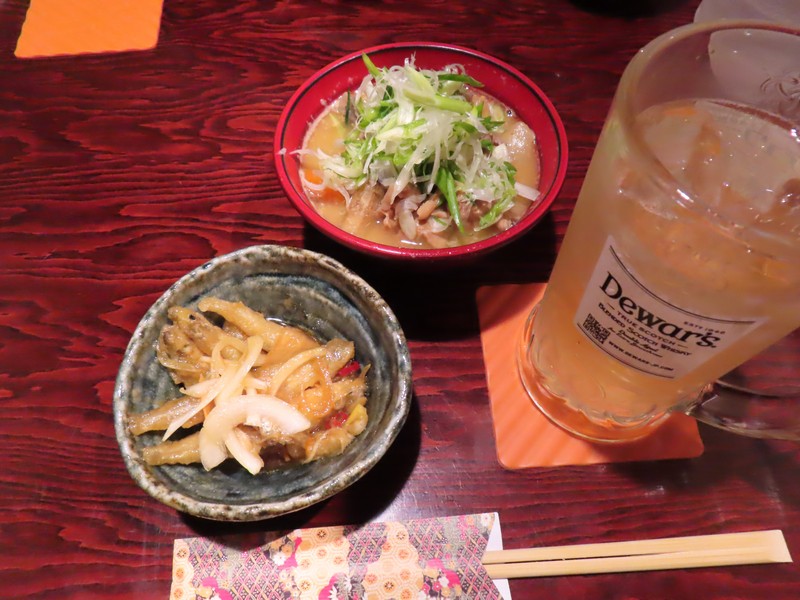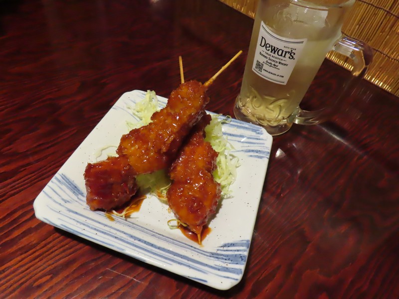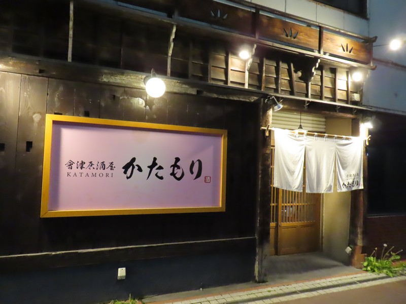 まだ18時だが、夜ごはんはどうしようか。気になる店があるので電話してみたら、今日は予約でいっぱいとのこと。少しうろうろしていると、居酒屋さん発見。會津居酒屋と書いてあるし、店の名前も「かたもり」だし、これは会津感が満載だ。入りますか。予約はないが少し間があって個室に案内されたが、どうやらこの後に来た人は満席と断られていました。危なかったな。いつもはビールだが、ハイボールもいいかな。日本酒は百佳(ひゃっけい)の純米酒。お通しが南蛮漬けとどて煮、これはポイント高い。まず、おいしいです。一日しっかり歩いた疲れが癒されるね。まずはたたききゅうり、これはさっぱりシャキシャキと安定のおいしさ。続いて来たのがソース串カツ。甘めのソースがいい味でこれはハイボールによく合うね。そしてやっぱり会津と言えばの馬刺し、おそらくもうこれで売り切れになっていたようで。よかった。熊本や長野の馬刺しはもう少しさしがあったりするしコウネとかの部位もあったりするが、会津はしっかりした赤身。どれもおいしいが、会津のは赤身に集中してしっかり楽しめるのがいい。そして締めは焼きおにぎり。ちょっと少なめにも思えるが、今日はこの後もあるのでこのくらいで。どれもおいしかったです。ごちそうさまでした。