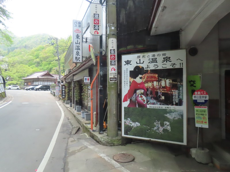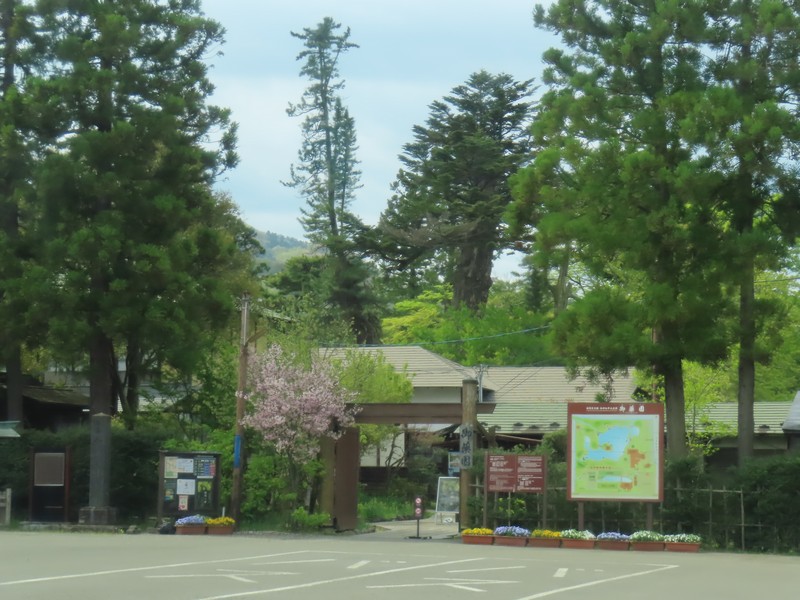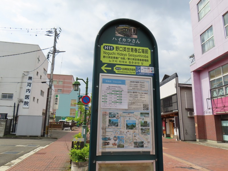 では飯盛山へと行きましょう。ホテル前にバス停があるので、しばらくするとハイカラさんが到着。これに乗れば飯盛山前まで行けるが途中ぐるっと遠回りがある。まあそれも名所を見るということで。鶴ヶ城前を通り、御薬園前に停車。ここは代々会津藩主の別荘地であり、薬草も栽培していたところ。美しい庭園があるらしい。続いて会津武家屋敷、西郷頼母の屋敷を復元した敷地に歴史資料館などがある。さらにここからぐっと奥に入っていくとそこは東山温泉。会津の奥座敷とも呼ばれる温泉地。一旦バスは奥まで入り、そこからまた戻って一路飯盛山へ。このあたり、また会津に来る機会があればそれぞれ訪れてみたいな。東山温泉の泊ればいいんだよね。