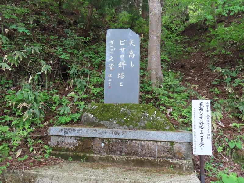 その前を通って行くと鳥居があり、ここは厳島神社。昔は宗像神社と呼ばれていた。うーん、このあたりがあの世界遺産となにか関係があるのかはまだ勉強不足。その奥には戸ノ口堰洞穴があり、猪苗代湖から水を引く用水路。白虎隊士が抜け道に使ったとのこと。「天高しピサの斜塔とさざえ堂」との石碑があり、作者は桜桃子。さくらももこ?と思ったら成瀬櫻桃子(なるせおうとうし)という俳人のものでした。この先にそのさざえ堂があるので、階段を上がっていく。