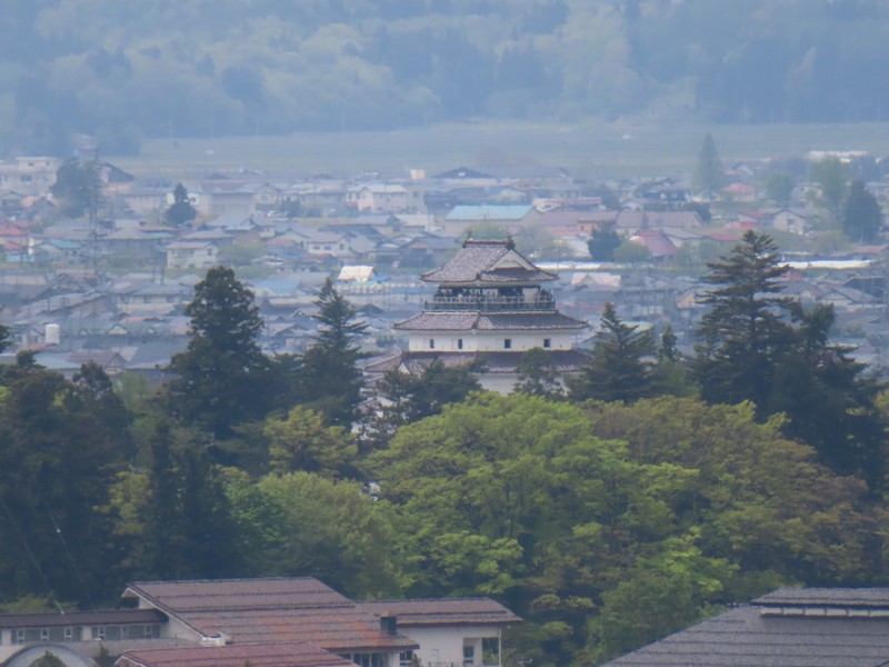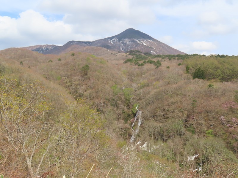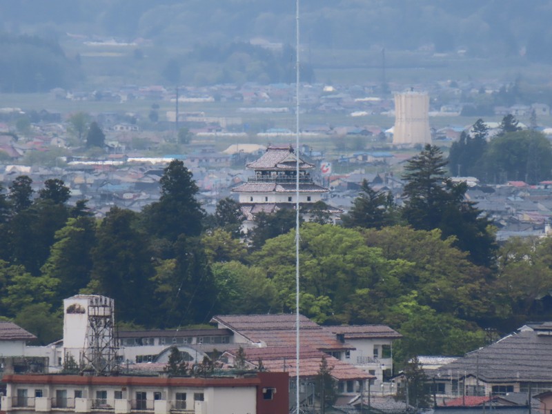 そろそろ12時。レンタカーの予約は13時だが、もう受け取り可能とのことなので。会津若松駅近くのENEOSへ。ここでニコニコレンタカーが借りられるのだ。ホテルに寄ろうとすると、お祭りでもやっているのか途中から通行止めに。ぐるっと迂回してホテルの駐車場に入り、預けた荷物を受け取る。ありがとうございました。では出発、五色沼に向かいましょう。ナビ通りに走ると山道に入る。ここは磐梯山ゴールドラインという道で、途中の休憩所では磐梯山と猪苗代湖を見ることができました。細く見える滝は滑滝。景色を見てリフレッシュして、行きますか。