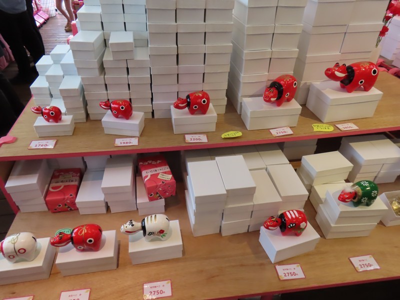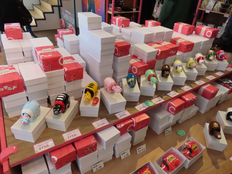 帰りは長い階段を下りていく。では白虎隊記念館へと行きましょう。ここは館内撮影禁止です。白虎隊が所持していた短刀や家族への直筆の手紙などの遺品、会津藩に関する様々な資料などが展示されている。当時の様子がわかるジオラマなどもあり、いろいろと考えさせられます。では最後にアカベコランドへ。ここにはいろんな種類の赤べこがある。大きさや色もさまざまだが、おもしろいのは干支のもの。丑や午、未や亥はまだわかるが辰や巳はなんとも言えない不思議な生き物になっていました。よく見ると卯も酉もかなり変かも。