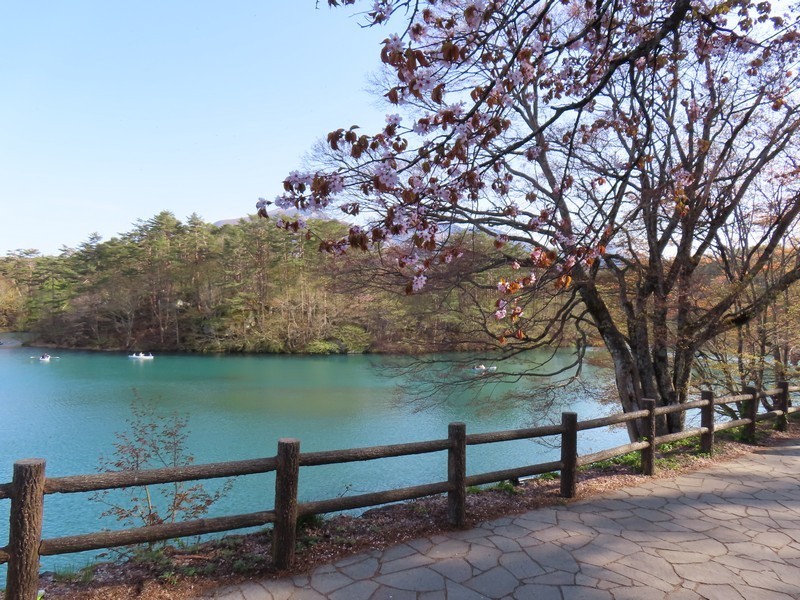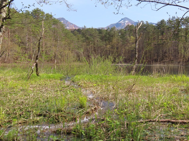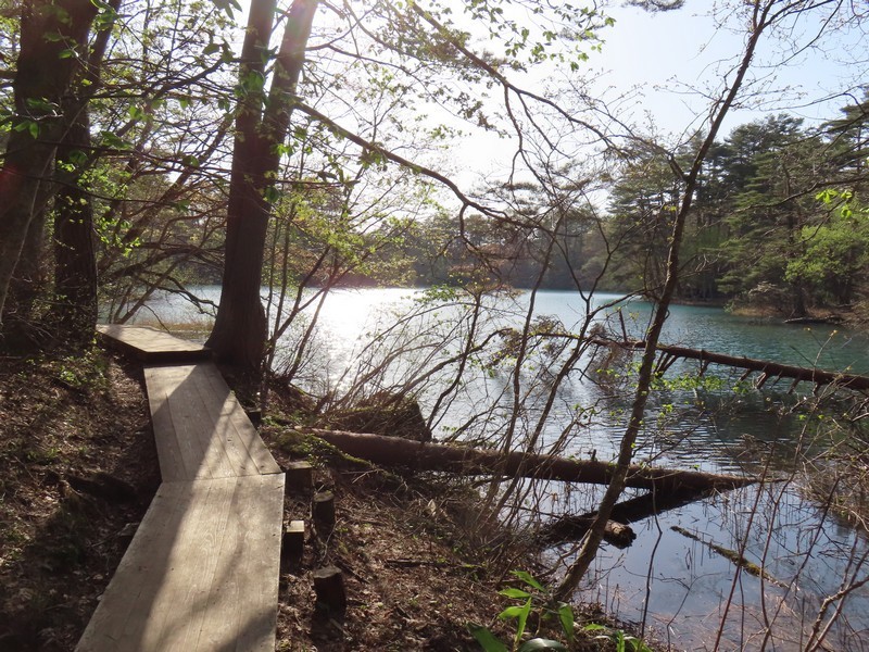 まずは柳沼。周りを木が取り囲み、鏡のような水面にその緑色が映っているようだ。他の湖より酸性度が低く、フナやワカサギなどが多数生息しているとのこと。美しいです。このあともさまざまな沼を見ていくのだが、歩きやすい道もあれば水たまりになっている道もありそうだ。まだ雪が残っているところもあるしね。足元にも気を付けて、景色を楽しみましょう。