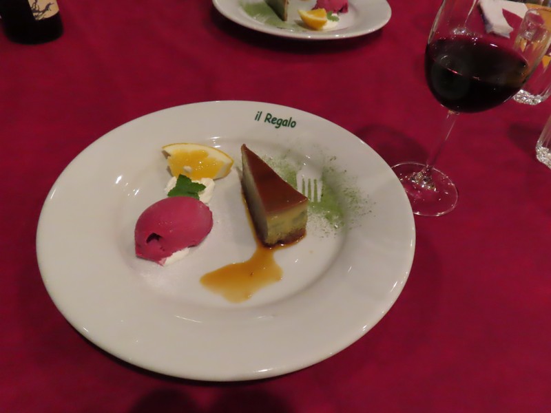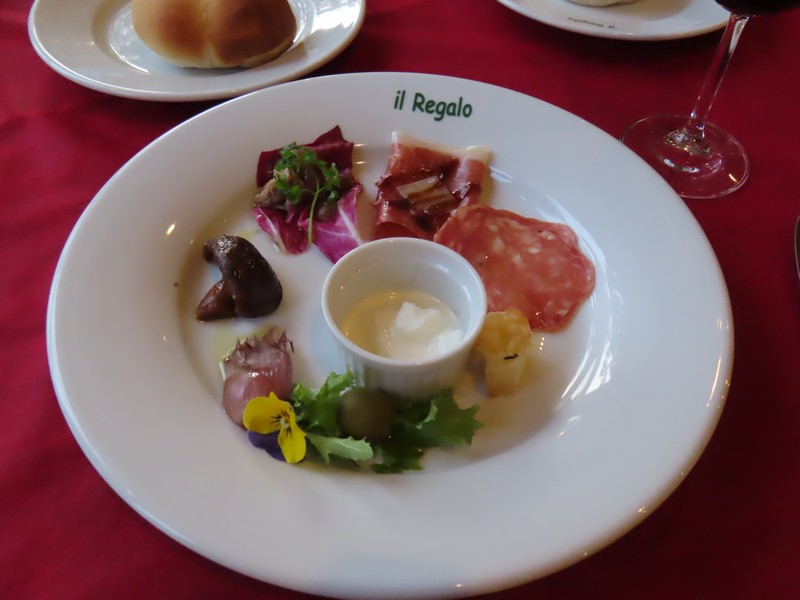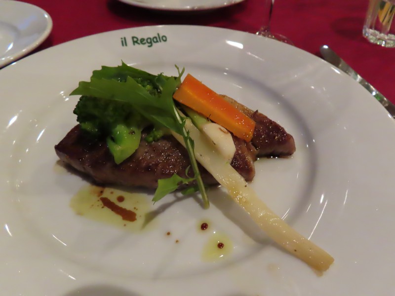 夜ごはんは18時から。1階のレストランへ行くと、宿泊のお客さんが集まり始めている。ここではイタリアンのコースをいただけるのが楽しみだ。窓際の席に案内されました。まずはワイン、今日は赤ワインを選びましょうか。アブルッツォのArbinoアルビーノというのにしようかな。香り豊かな飲みやすいワインだ。そして今日のメニューは以下の通り。 ■アンティパスト 高原野菜と生ハムなどの前菜の盛り合わせ ■プリモピアット 川俣シャモとオリーブのマリナーラトマトソーススパゲッティ ■セコンドピアット 福島和牛ステーキ バルサミコソース ■ドルチェ ボネ(桑茶とアマレッティのプリン) 福島の食材をふんだんに使った、高原をテーマとしたイタリア料理。素材の味を生かした料理だ。アンティパストは野菜それぞれの味がしっかりとして、プリモのパスタは歯ごたえのあるシャモと黒オリーブがいい感じで、セコンドは柔らかいお肉とまたもやしっかりとした味の野菜。赤ワインもちょうどよく進みます。ドルチェのボネ、濃い味わいが赤ワインにちょうど良く、最後にコーヒーで締める。これは最高だな。