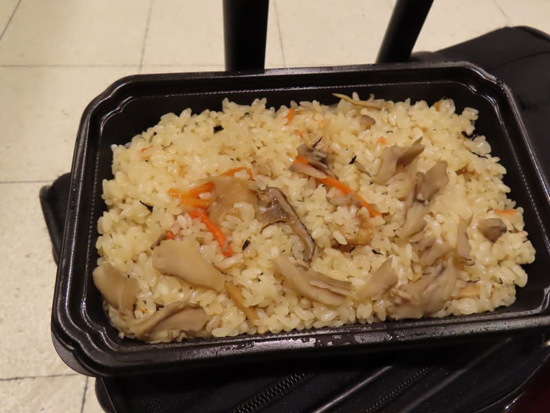 郡山駅の磐越西線は、エスカレーターの壁には会津の偉人や名産の写真が並んでいる。これから会津に向かう人にとっては、この様子はテンション上がるよね。猪苗代はやっぱり野口英世、記念館などもあり今回はそこまで行けなかったが、また機会があれば是非。朝ごはんからほとんど何も食べていないのでおなかが減った。新幹線の乗換口前に駅弁屋さんがあり、いろいろ迷うので昼用と夜用買いますか。でもまずはとにかく何か食べたいので、きのこ飯をいただきます。うまいなあ。ようやくおなかが落ち着いたかな。