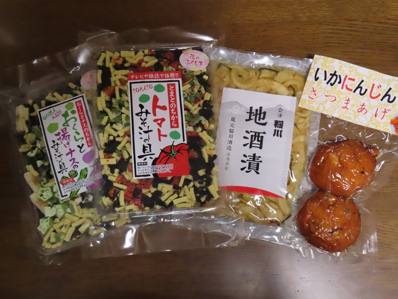 ということで、今回の収穫。湯野上温泉、大内宿、会津若松、猪苗代とそれぞれ特徴があり魅力的なものがあふれていました。そんな中から厳選して、たっぷりと無事に家までお持ち帰り。いろんなお菓子やごはんのお供、地元野菜など食べていきましょう。しばらくは楽しめそうです。