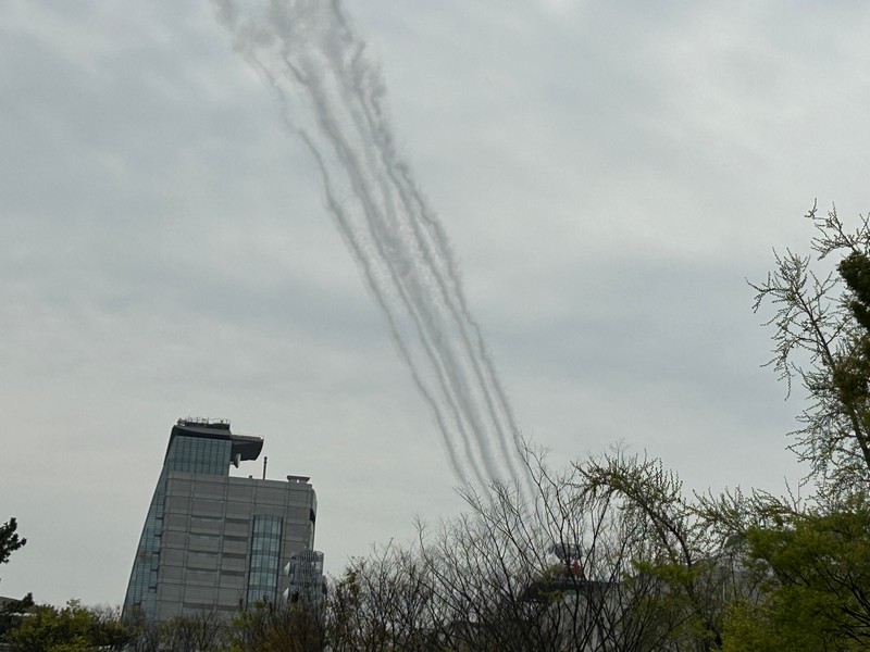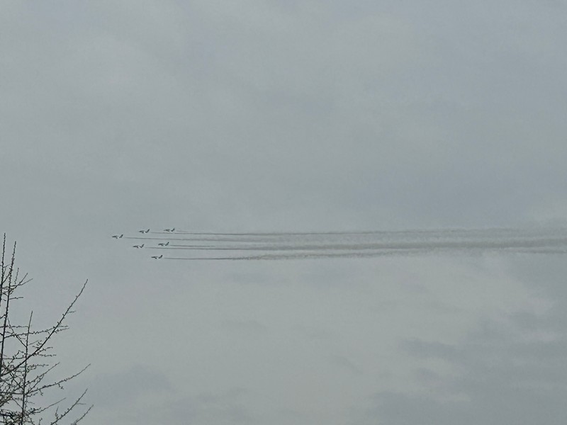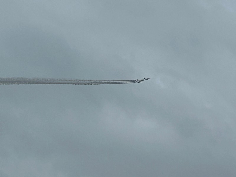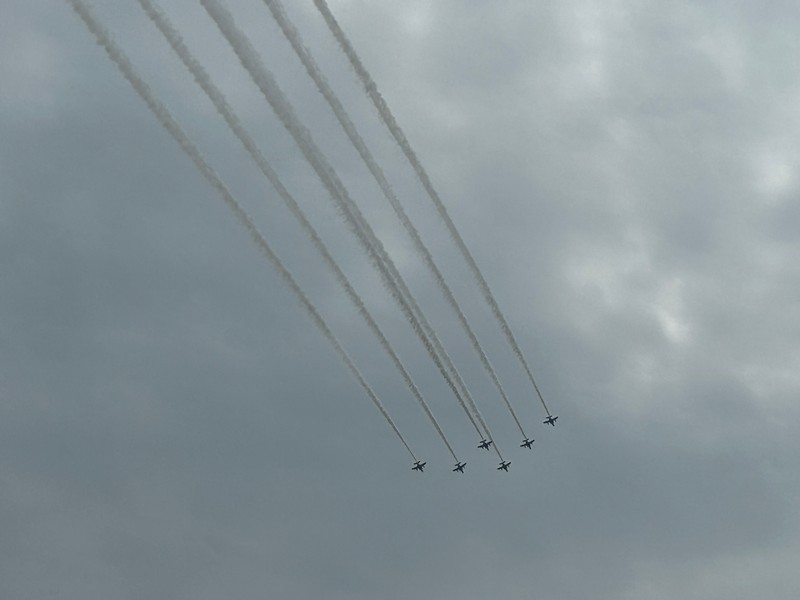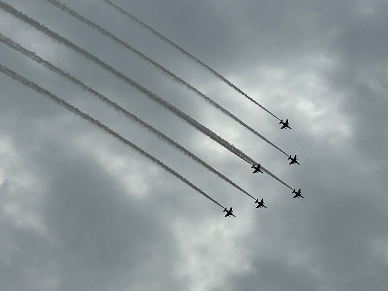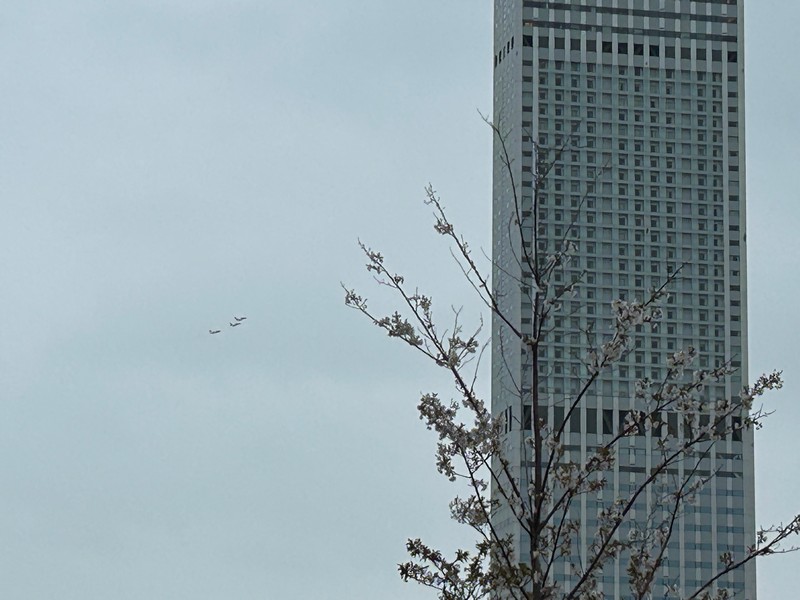 大阪・関西万博、今日はいよいよ開幕日。あいにくの空模様だが、たくさんの人が初日の会場に集まっているようだ。われわれの初訪問は4/19を予定しているので、今日はブルーインパルスの記念飛行を関西空港および大阪城公園で見よう。関西空港サイドでは雨の中飛行準備が進められているが、やはり天候不良のため今日のフライトは微妙な状況。まずは3機によるテストフライトが行われたが・・・残念ながら、今日は視界不良のため中止。3機はフォーメーションを解き、関空へと戻っていきました。安全第一だが、残念だ。