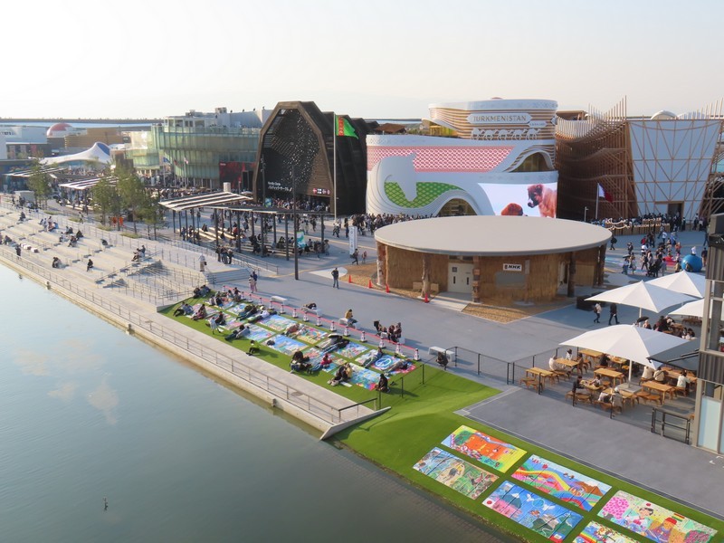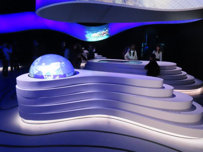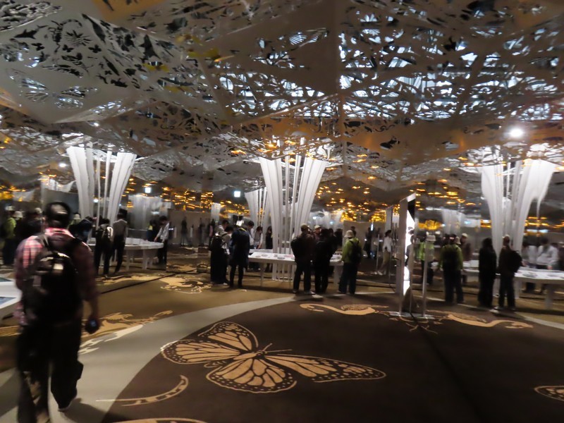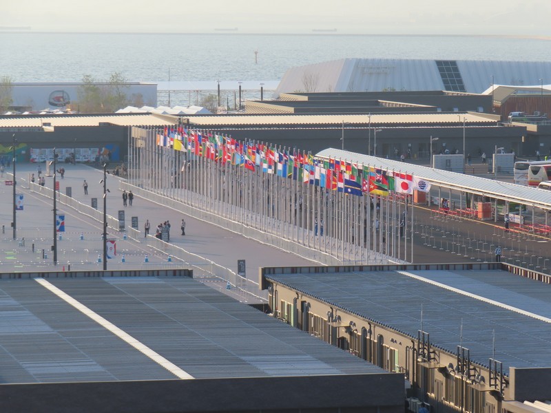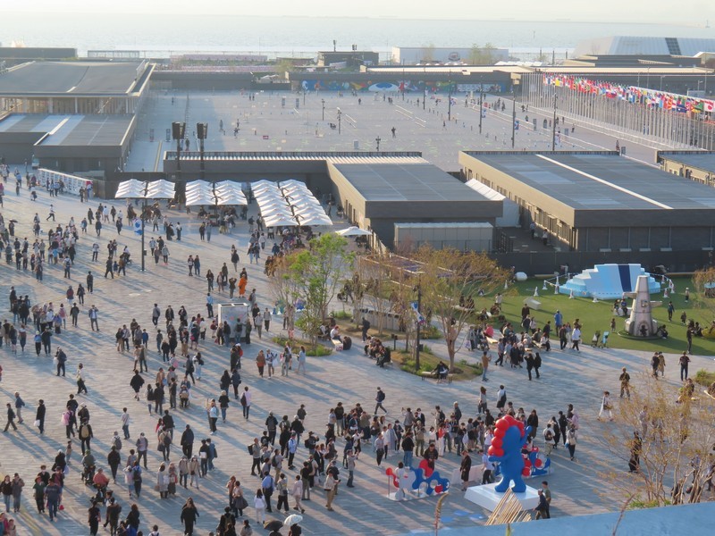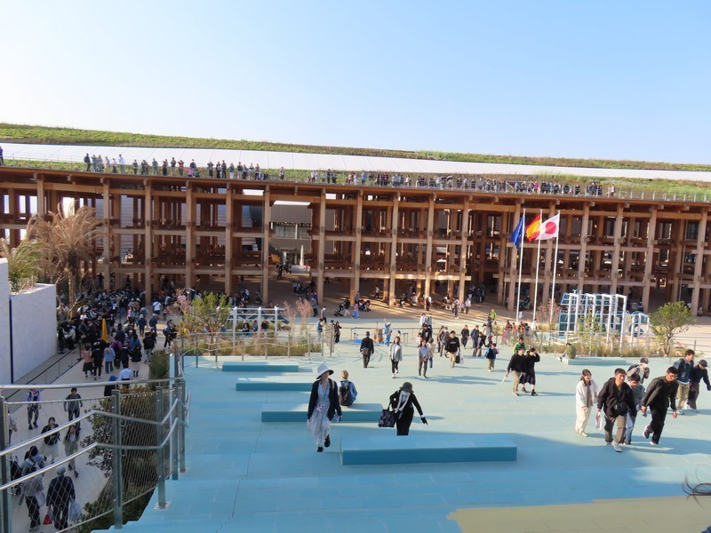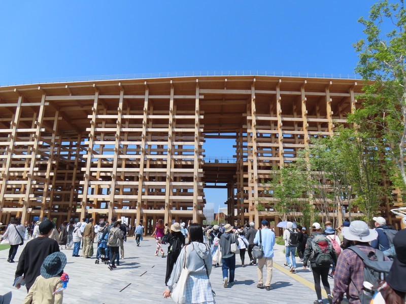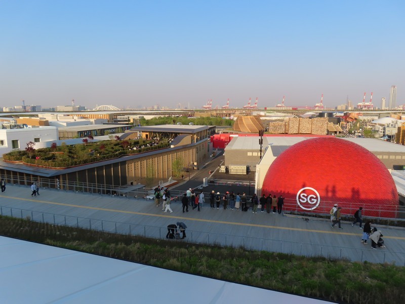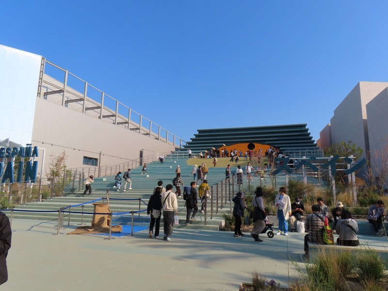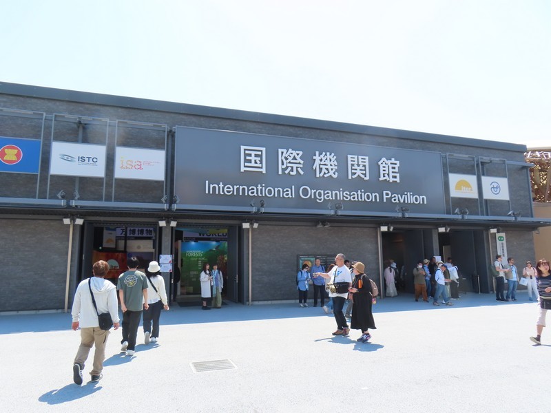 さらに人が増えてきた。とりあえず、近くにあってすぐに入れそうな国際機関館へ。ここは5つの期間の展示がある。次世代エネルギー開発にかかわるところでは「ISTC(国際科学技術センター/International Science and Technology Center)」「iter(国際核融合エネルギー機構/International Fusion Energy Organization)」「isa(太陽に関する国際的な同盟/International Solar Alliance)」の3機関、日本とのつながりの深いところで「ASEAN(東南アジア諸国連合/The Association of Southeast Asian Nations)」、そして「万博博物館/World Expo Museum」ではこれまでの万博の歴史についての展示がありました。普段あまり見ることのないこうした国際機関に触れられるのも万博ならでは。このまま隣の国際連合館や国際赤十字・赤新月運動館も見ようとしたが、列は短いが予約優先でかなり待ちそうなのでまたの機会に。
