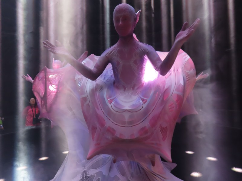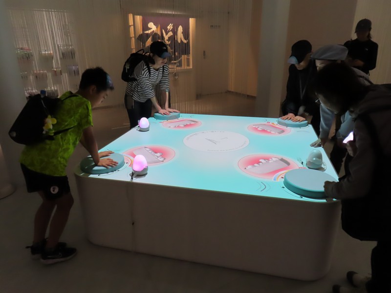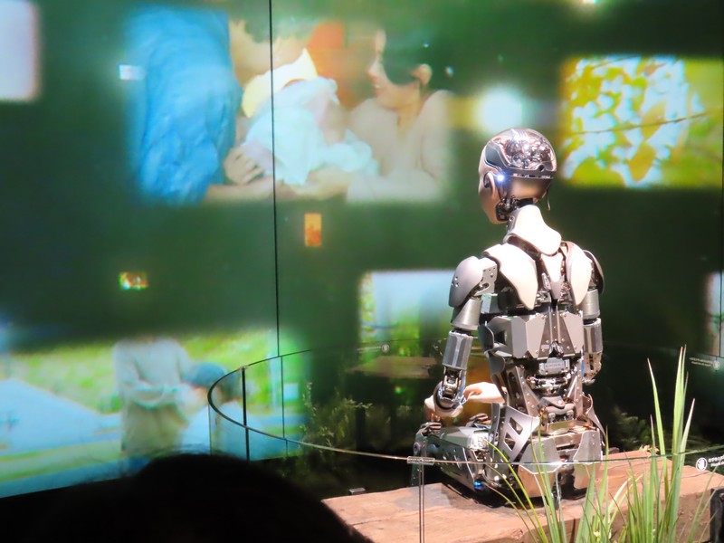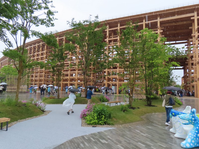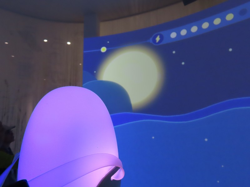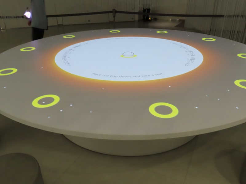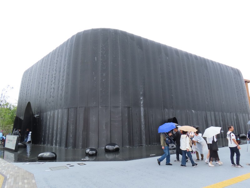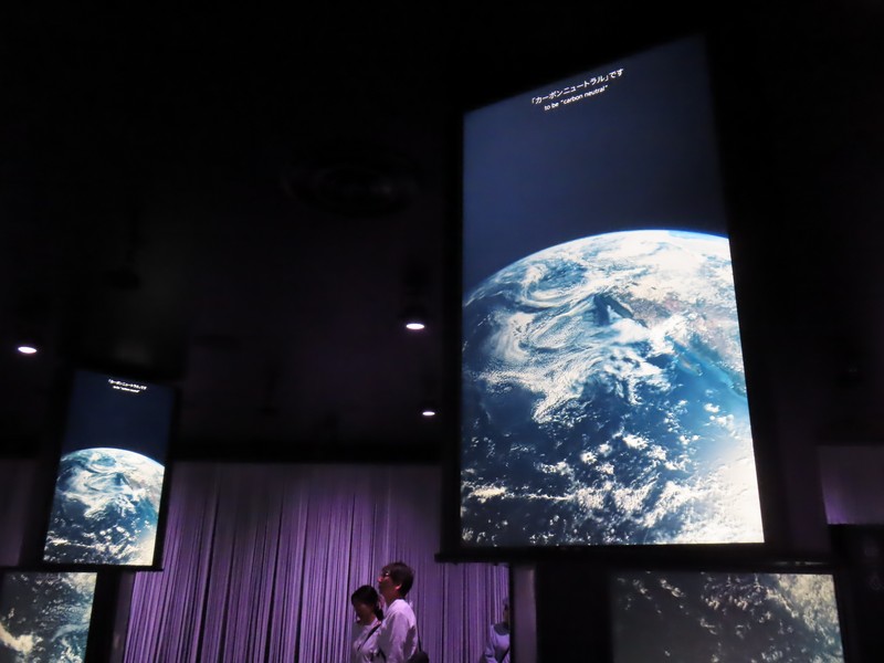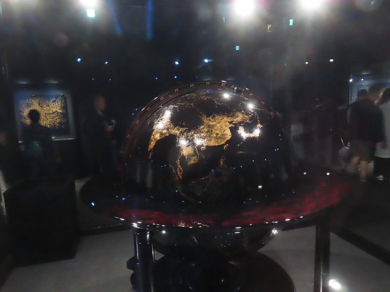 「夜の地球 Earth at Night」に来てみると、すぐに入れるようだ。ここは実はもともとはイランが入る予定だったパビリオンらしく、撤退してしまったので輪島塗の大型地球儀「夜の地球 Earth at Night」が展示されることになったらしい。石川県輪島漆芸美術館にあったものとのことで、館内では輪島塗の各工程が説明されていて、この地球儀の制作過程がわかるようになっている。椀木地・曲物木地・指物木地・朴木地・髹漆・呂色・蒔絵・沈金の各職人さんがかっこいいいな。地球儀は直径1メートルにも及び、光沢のある漆黒の表面と金で描かれた国々の輝きが美しい。薄暗い中のガラス越しなので、写真を撮るのはちょっと難しいが。