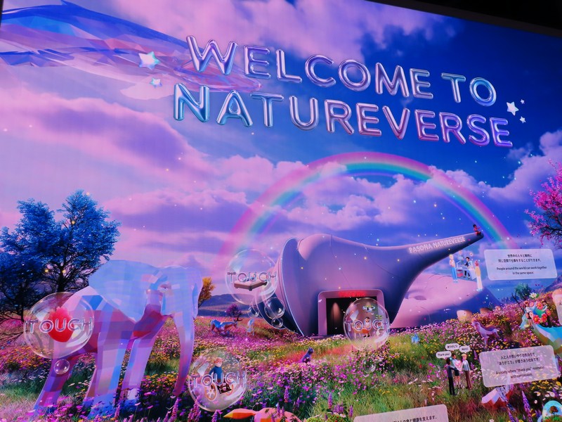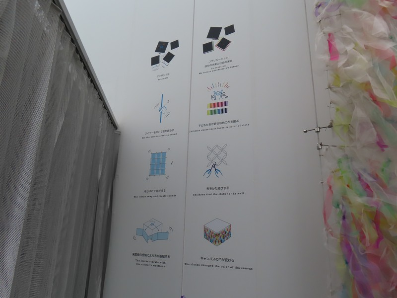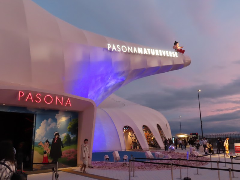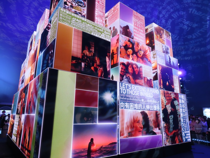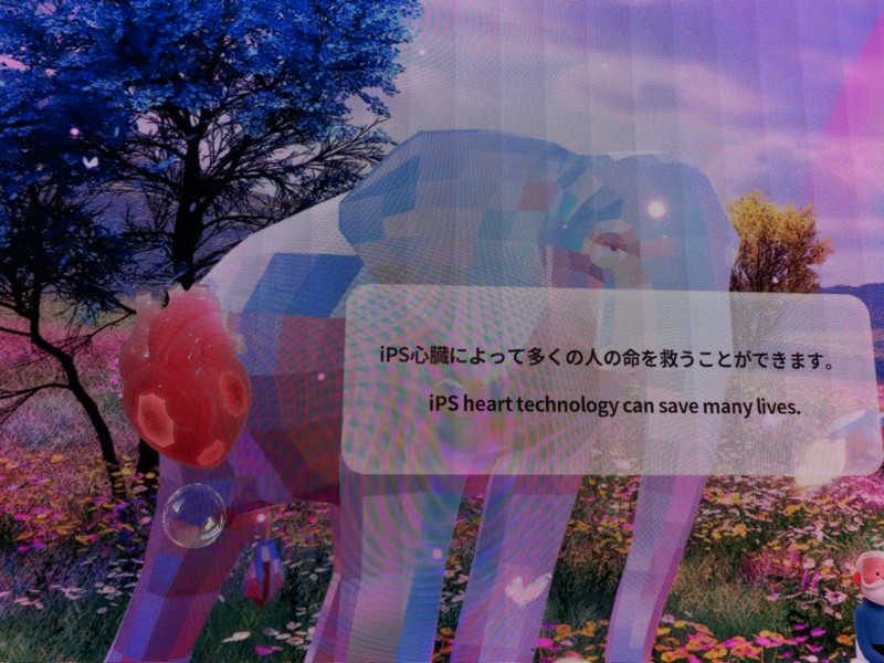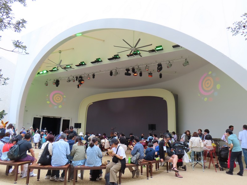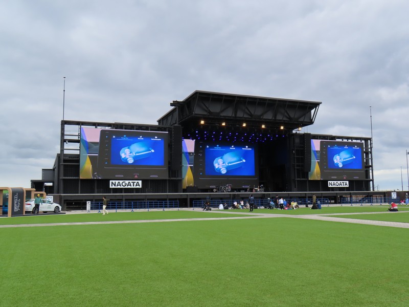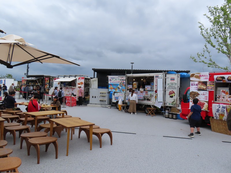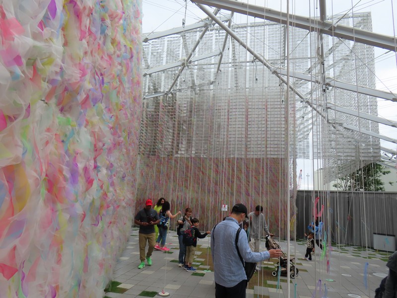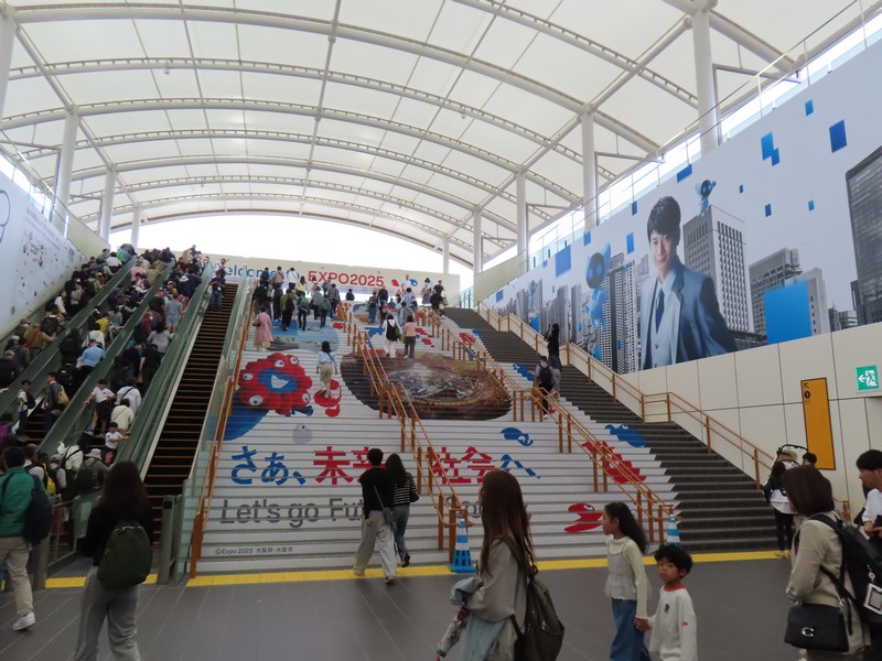 少々食休み。ゆっくり歩いていこう。西ゲートあたりをのんびりしていると、何やらオブジェを発見。説明を見てみるとさっきのサンゴの記憶と同じく、EXPO PUBLIC ARTという取り組みで、万博会場内の13か所に日本のアーティストによる作品が展示されているらしい。そうか、それなら他も気にしてみてみよう。この作品はHard Boiled Daydreamという作品で、身の回りの物のサイズ、用途、価値などを無視してつなぎ合わせることで二次元と三次元、現実と仮想、過去現在未来などを表現しているとのこと。うーん、現代アート。