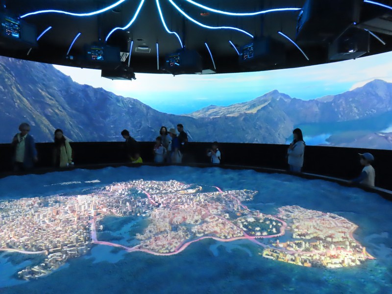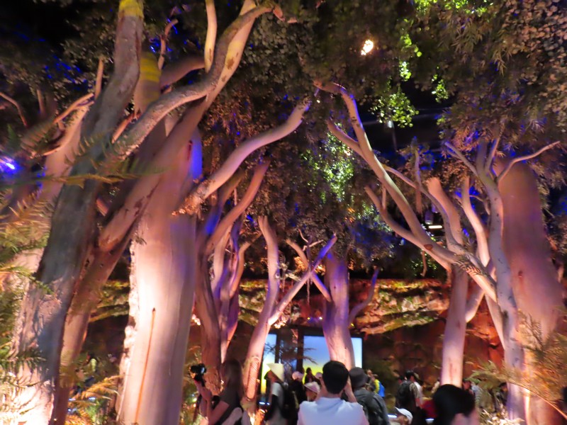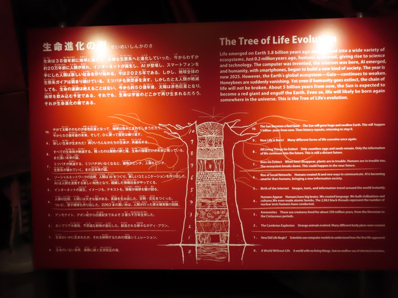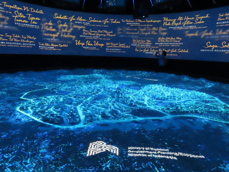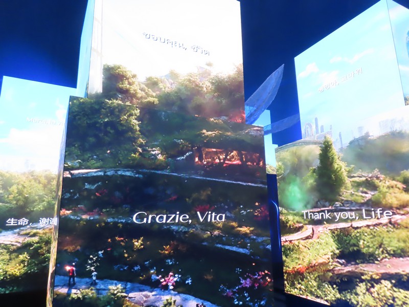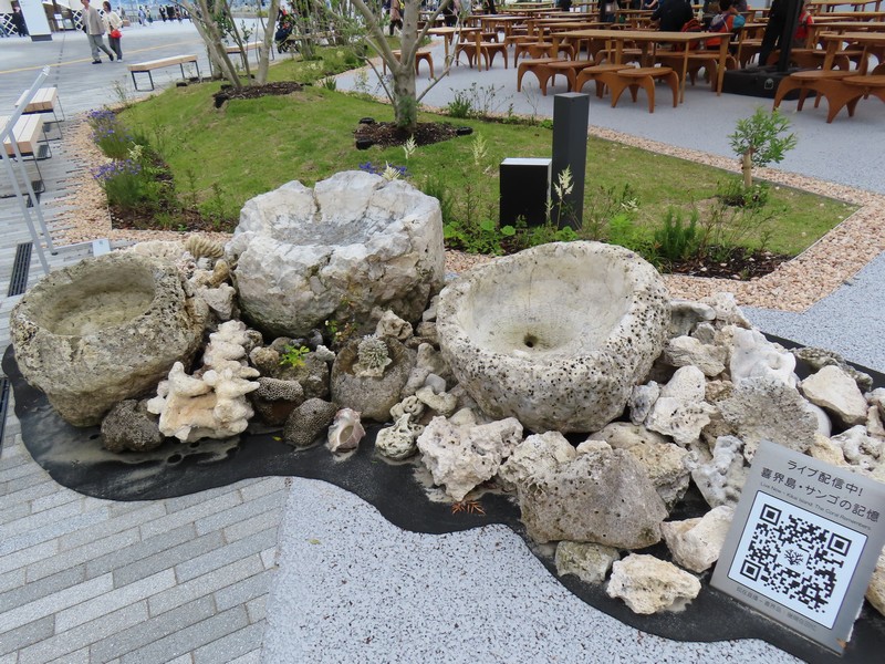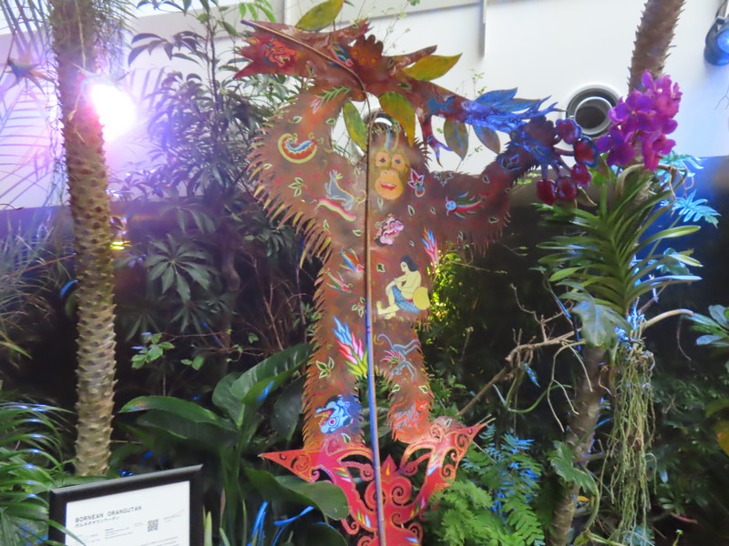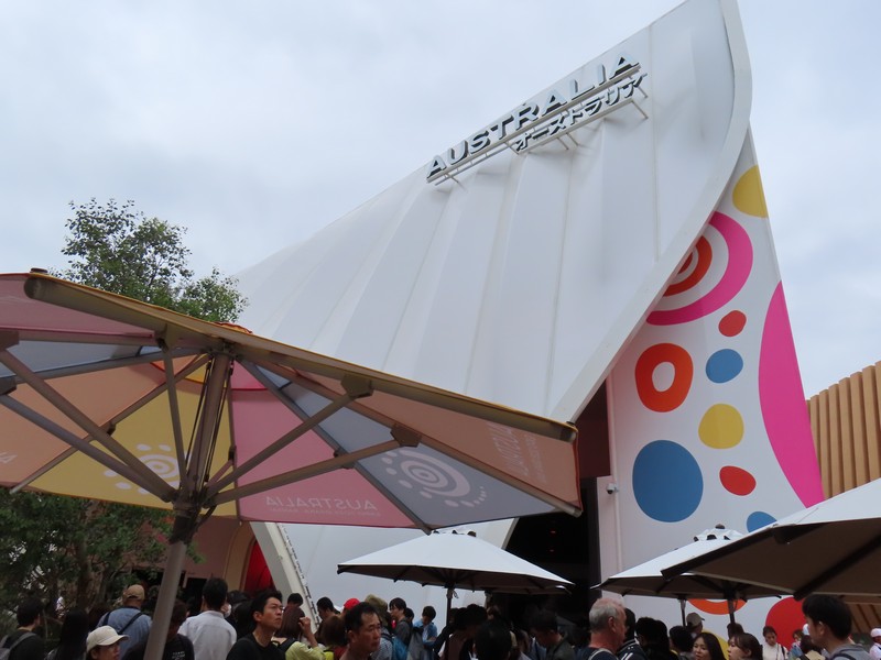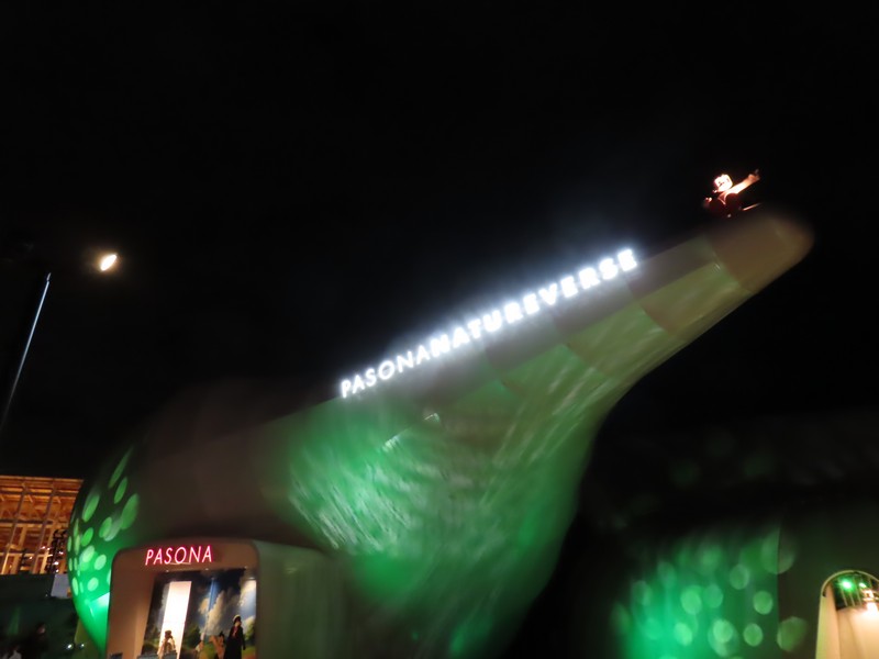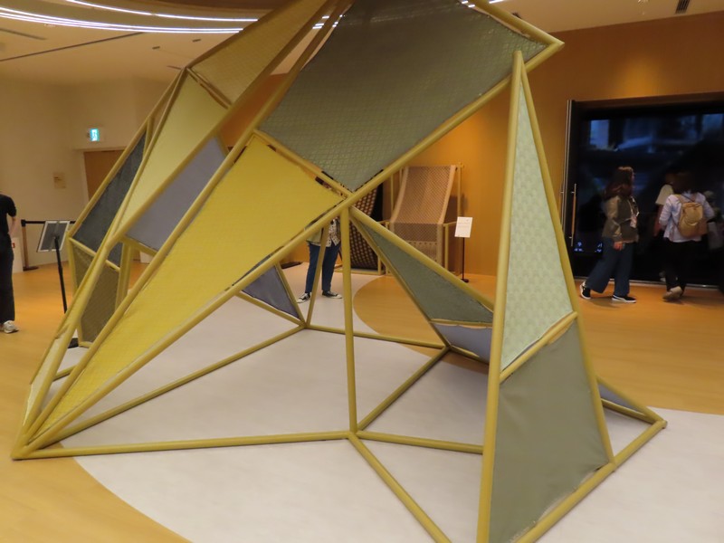 少々食休み。ゆっくり歩いていこう。西ゲートあたりをのんびりしていると、何やらオブジェを発見。説明を見てみるとさっきのサンゴの記憶と同じく、EXPO PUBLIC ARTという取り組みで、万博会場内の13か所に日本のアーティストによる作品が展示されているらしい。そうか、それなら他も気にしてみてみよう。この作品はHard Boiled Daydreamという作品で、身の回りの物のサイズ、用途、価値などを無視してつなぎ合わせることで二次元と三次元、現実と仮想、過去現在未来などを表現しているとのこと。うーん、現代アート。