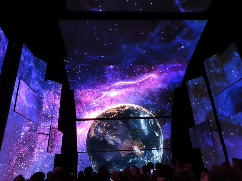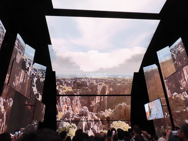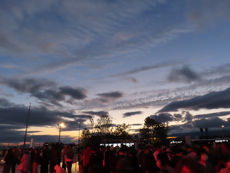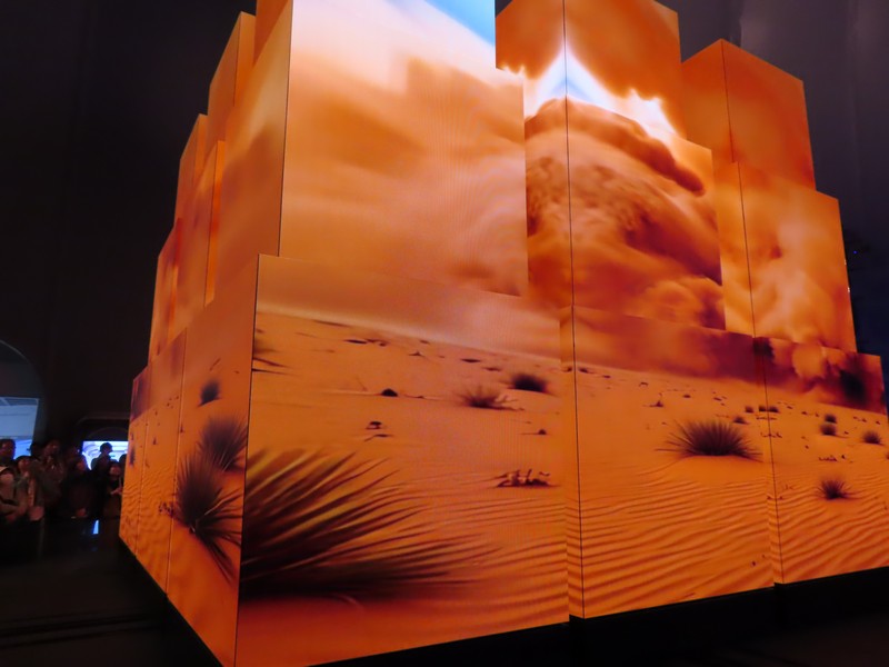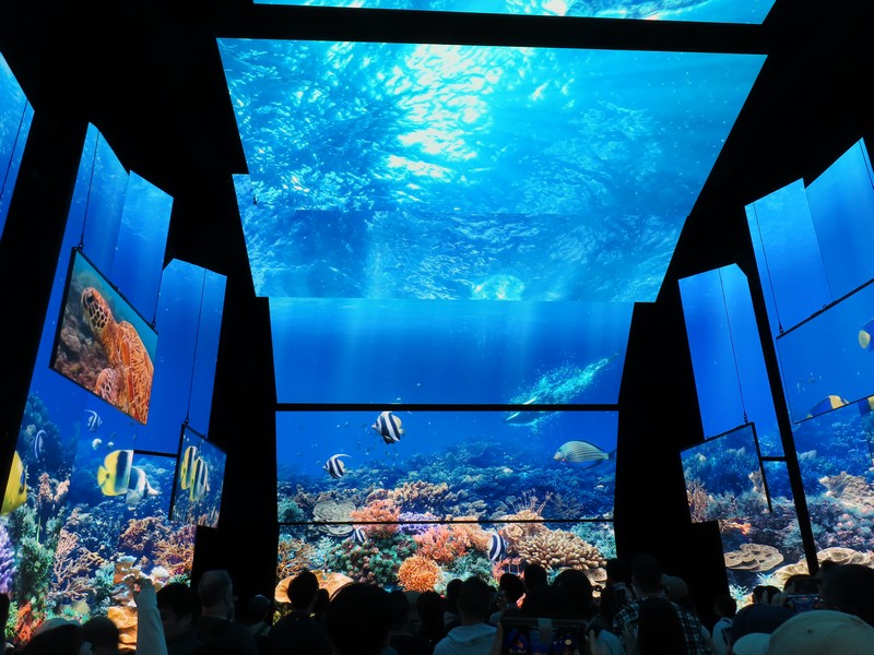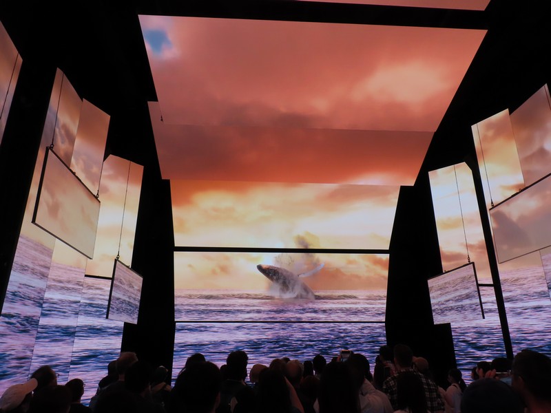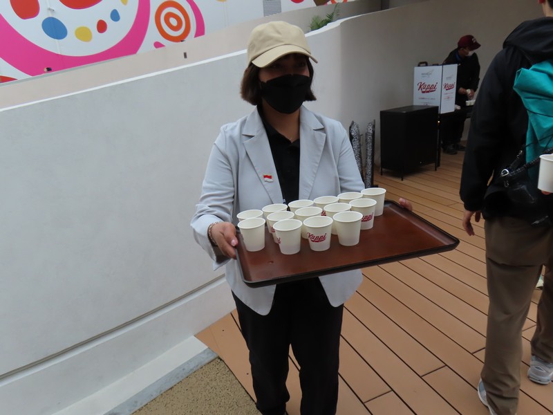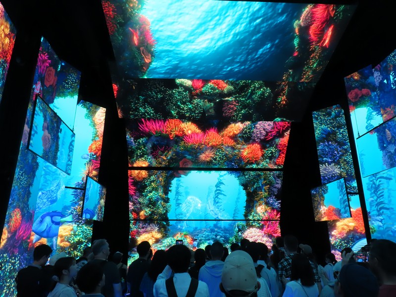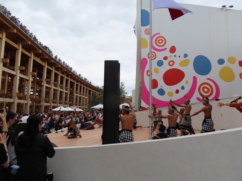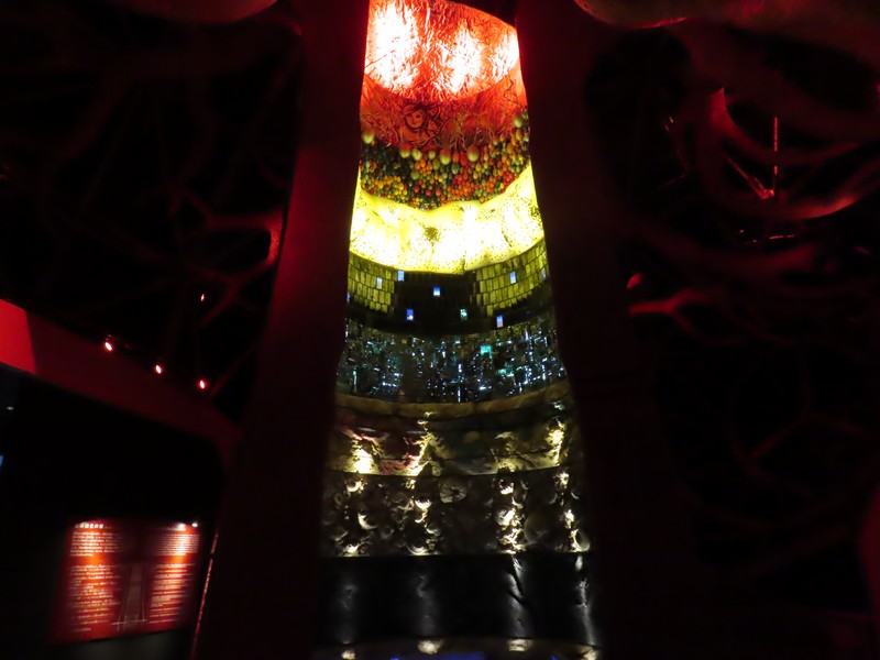 少々食休み。ゆっくり歩いていこう。西ゲートあたりをのんびりしていると、何やらオブジェを発見。説明を見てみるとさっきのサンゴの記憶と同じく、EXPO PUBLIC ARTという取り組みで、万博会場内の13か所に日本のアーティストによる作品が展示されているらしい。そうか、それなら他も気にしてみてみよう。この作品はHard Boiled Daydreamという作品で、身の回りの物のサイズ、用途、価値などを無視してつなぎ合わせることで二次元と三次元、現実と仮想、過去現在未来などを表現しているとのこと。うーん、現代アート。