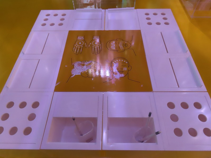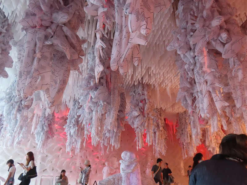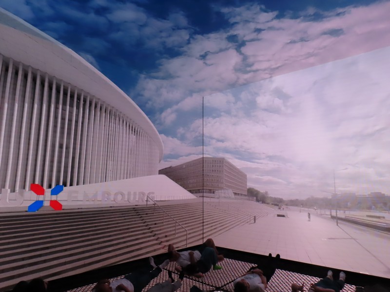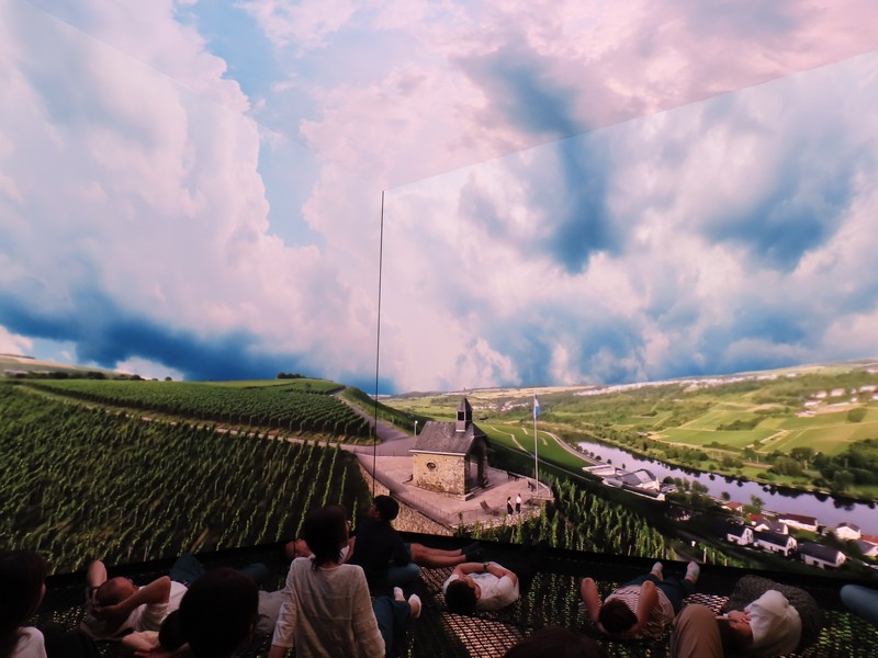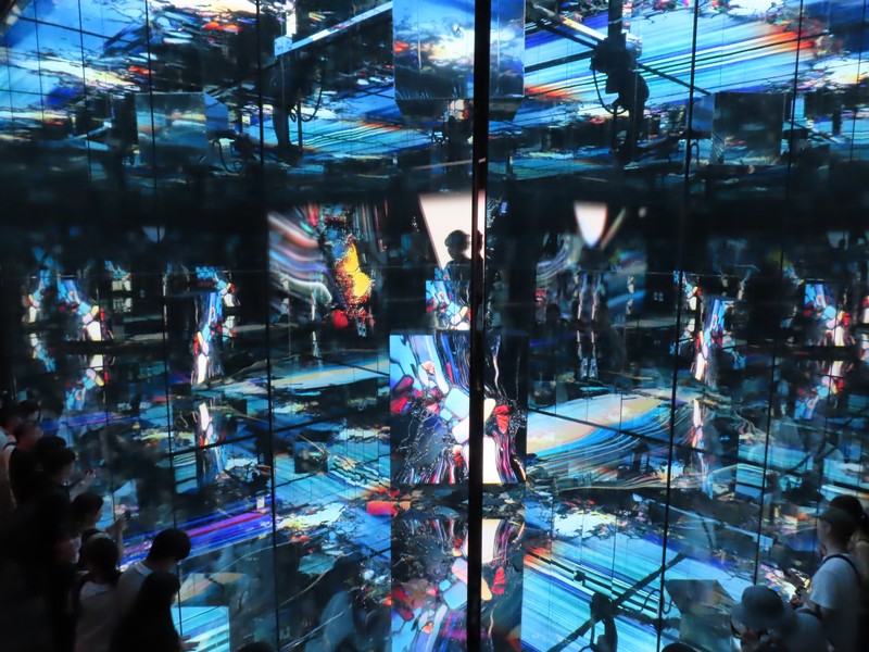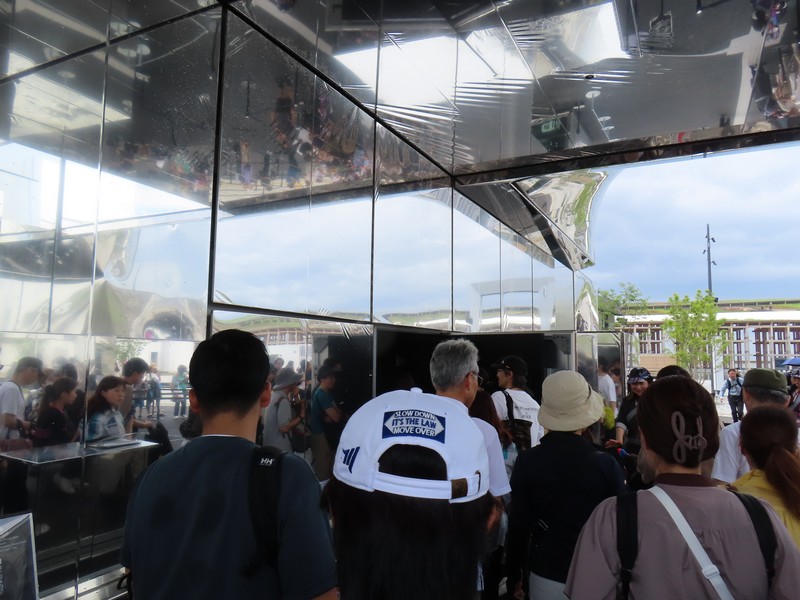 「外観は全面が特殊鏡で覆われ、環境の映り込みや振動で姿を変える「生きた彫刻」のような建築デザインとなっている。館内での体験は予約制の「ダイアログモード」(ミラールームでの対話型展示)と、当日整理券制の「インスタレーションモード」(非言語的な没入展示)の2種類が用意されており、それぞれ言語的 vs 非言語的な認知モードを象徴しています。」
