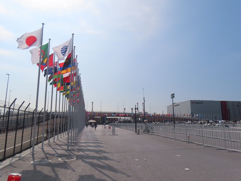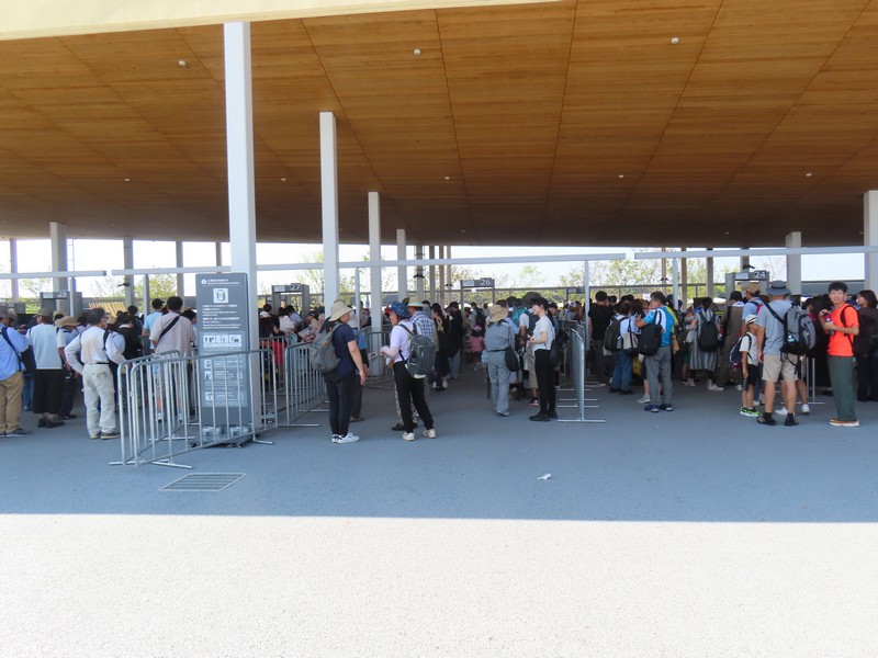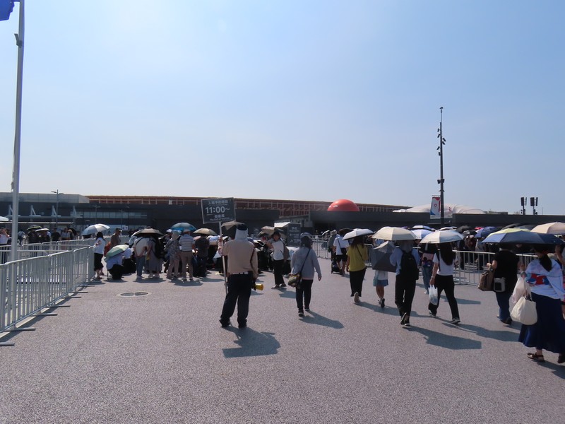 まだ9時半過ぎだが、すでに11時予約の列には人がいた。とはいえまださほど多くはなく、おそらく東ゲートよりは少ないだろうな。始発9時以外は西の方がいいのかもしれない。10時を過ぎた頃、列が移動。ある程度進んだ場所でしばらく待つ。30分ほど経っただろうか、2度目の移動。ゆっくり動いていき、最終的にゲートを正面に見るところまでやってきた。セキュリティには多くの人がいるがこれは10時入場組だろうな。一旦落ち着いた後行列は全体的にゆっくり進み、セキュリティ前まで到着。ここで10時組の列と一体化し、10:45くらいに入場完了。思ったよりは早く入れたし、やっぱり西の方がいい気がする。