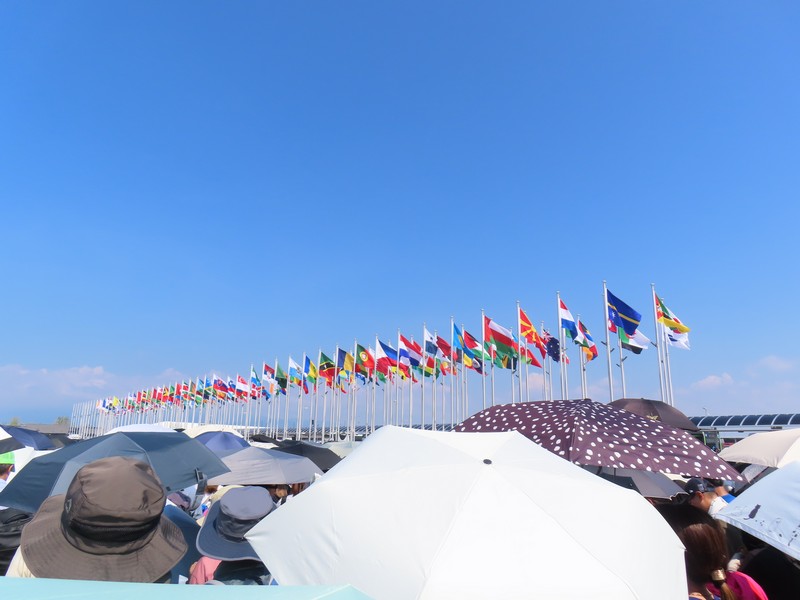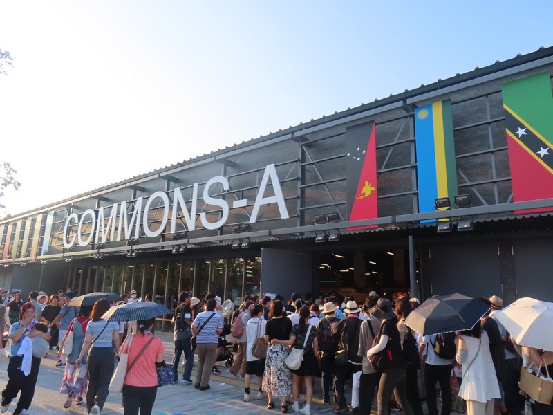 それにしても人が多い。しばらく団体休憩所でのんびりしよう。Earth Mart横にある休憩所は奥行きがあり、人は多いが奥の方はそれなりにゆったりしている。こうした休憩所があるのはありがたいが、日陰なのでまだましとはいえ空調がないとちょっと暑い。もう少し涼しいといいのにな。次はコモンズAに行きますか。残り10か国くらいだったので、終わらせようと思い行ってみると入場制限中。とうとうコモンズもこうなったか・・・まあ人が多いと仕方ないよね。係の人はしきりにほかの場所に行けというがそういわれても、という人が機会をうかがっている感じ。難しいところだが少しだけ離れたところにいるしかない。20分ほど経ち、ようやく入場ができるようになった。中はかなり人が減って快適だが、並ばせて少しずつ入れていった方がいいと思うのだが・・・前回につづいてのコモンズA、じっくり楽しみましょう。