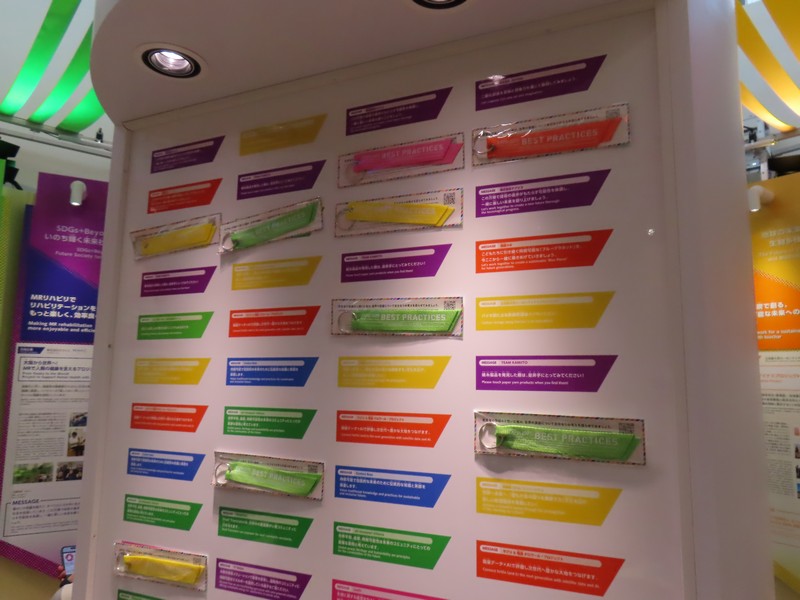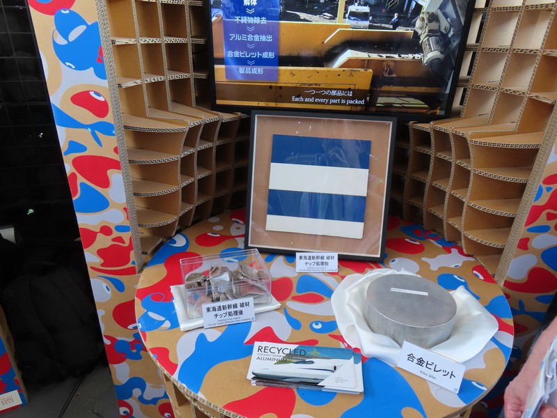 西から入った時は、まずはベストプラクティスへ。一日一つのリボン、残り少なくなってはいたがまだ持っていない黄色をいただきました。よかった。続いてフューチャーライフビレッジだが、目的は漫画家メッセージボード展。整理券制だが11時が取れたので、それまでは別の展示を見ますか。隣で行われていたのは西陣織のアート作品展。繊細な色合いが美しく、ルノアールとゴッホが柔らかい雰囲気の作品になっている。メーテルの休日や源氏物語はいずれも京都が舞台、西陣織で表現すべき場面だな。室生寺と聖林寺はどちらも奈良のお寺だが、それぞれの仏像がとても美しく表現されている。フューチャーライフビレッジは来るたびに異なる展示がされているが、今は新幹線のアルミニウムをリサイクルに関する内容。金属バットなんて野球少年にとっては最高のリサイクルだよね。特にドクターイエロー、人気者になれそうだ。