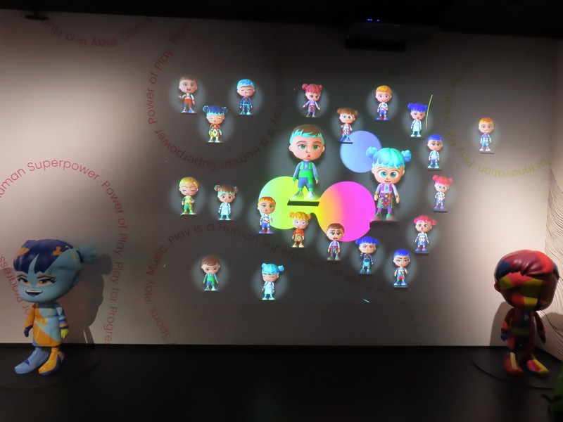 と、運営のまずさは気になったが並び始めると30分くらいで入場できた。なのでなおさら、もっとちゃんと並ばせてよ、という気持ちになる。さて、このパビリオンは植物に覆われた緑豊かな外観が目立つ。なんでもベオグラードにある島をイメージした「浮かぶ森」をコンセプトにしているとのこと。館内に入ると、まずは涼しさがありがたい。最初にセルビアを紹介するビデオがあるがそのまま先へ進めるので、大半の人がちらっと見ただけ。あれれ、せっかくなので見ましょうよ。音楽や舞台などの場面もあるが最も多かったのはスポーツ。サッカーやバスケ、陸上やテコンドーに水球など、セルビアが強い競技は多いがやっぱりテニスのジョコビッチ。錦織が越えられなかった壁だったね。では先へ進もう。ここのテーマは「遊びの社会」。単なる暇つぶしではなく、創造性や世界とのつながり、成長や探求心を養うなどの効果がある。それを表現しているので、館内はワクワクする仕掛けがあり、子供も楽しめる内容だ。