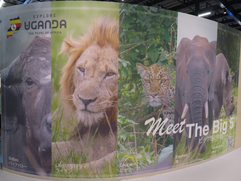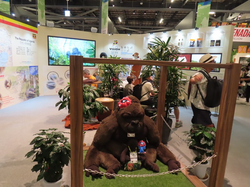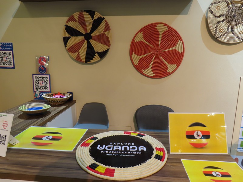 アフリカ東部、首都カンパラ。内陸国だが、ビクトリア湖など大きな湖があり野生動物の宝庫。壁にはバファロー・ライオン。ヒョウ、ゾウ・サイのサファリBig5が並んでいる。やっぱりこれはインパクトあるなあ。あとウガンダと言えばマウンテンゴリラ。今は世界に千頭くらいしかいないらしいが、そのうち半数がウガンダにいるとのこと。大きなぬいぐるみが迎えてくれており、CHIBITAという名前でスタッフのIDカードを持っていました。重要なスタッフだよね。