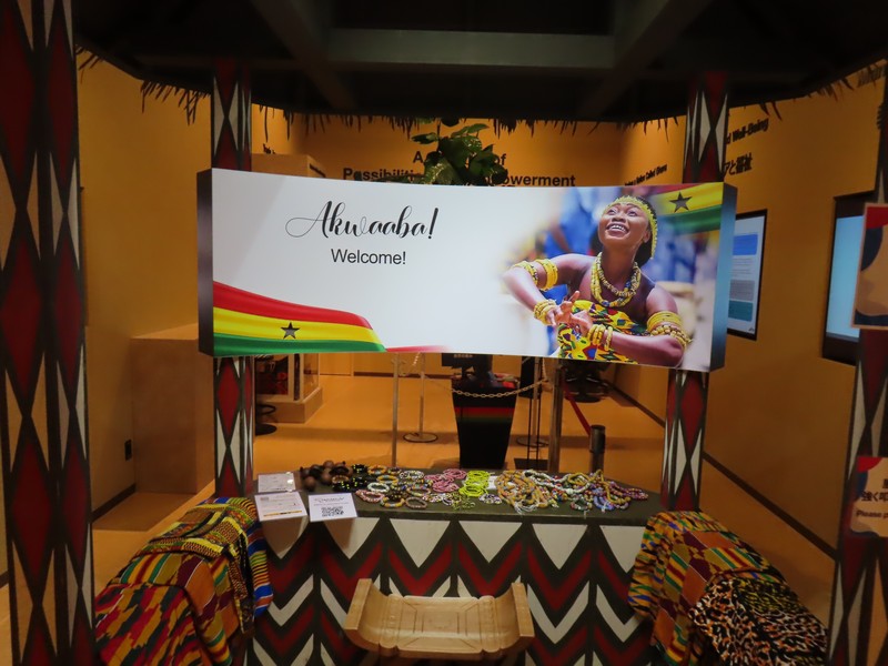 西アフリカ・首都アクラ。アクセサリーや布製品など手作りのものが展示されていたり、テクノロジーの発展に関する展示があったり。日本の援助についても紹介されていました。とはいえガーナと言えばやっぱりチョコレート、カカオの木の展示もありました。日本とのゆかりと言えば野口英世だが、その関連はなかったなあ。
