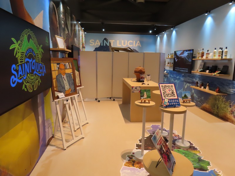 カリブ海・首都ブリッジタウン。英連邦に属しており、カリブ海に連なる島々から少し太平洋側に離れている。そのためクルーズ船の寄港地にもなっているようだ。カリブ海らしく、カラフルで明るく、きれいな海がイメージできるブースになっていて特産品としてはラム酒。発祥の地らしく、いい品質のラム酒を生産しているとのこと。あと面白いのは、100歳を超えた人は記念切手が発行されるそうで。