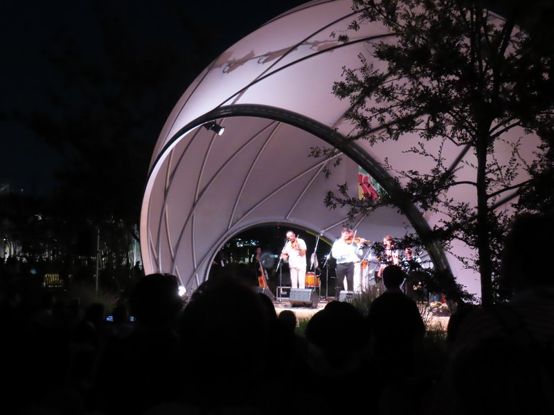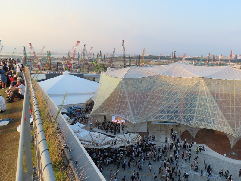 大屋根リングを越えて東ゲートに向かうが、今度はポップアップステージからの音楽が。これはハンガリーのチーク・バンドというハンガリー民謡のバンド。結成37年とのことで、大ベテランですね。少しだけ聞いて、本当に帰りましょう。そして東ゲートを出て、駅に向かい途中に花火が。これが本当に最後だよね。ようやくこれで、帰れるな。今日も一日、しっかりと楽しみました。