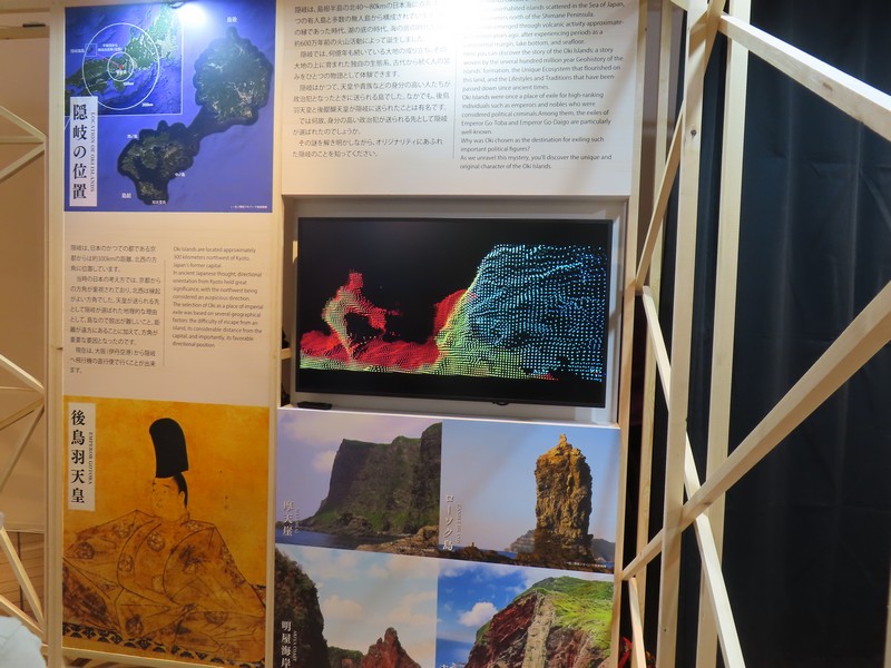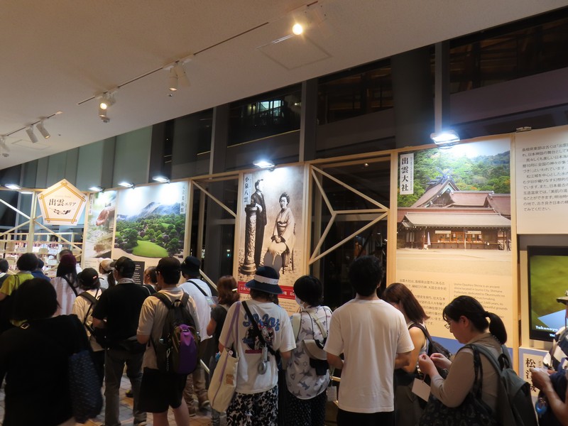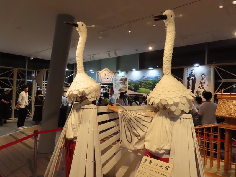 これで帰ろう、と思い東ゲート側へと向かう。途中のレイガーデンでは何かイベントが行われているようだ。行ってみると、島根県の各地域の名所紹介が行われていた。出雲大社、石見銀山、隠岐など魅力的な場所が紹介されている。特に印象的なのは鷺舞の衣装と石見神楽の大蛇。鷺舞は津和野とのことなので、どちらも島根西部の石見エリア、大昔に津和野は行ったが他はまだ行けてないところ。石見銀山とともに、石見めぐりは今後のテーマかな。あとは隠岐、ここも歴史があり、気になるところ。また考えてみよう。
