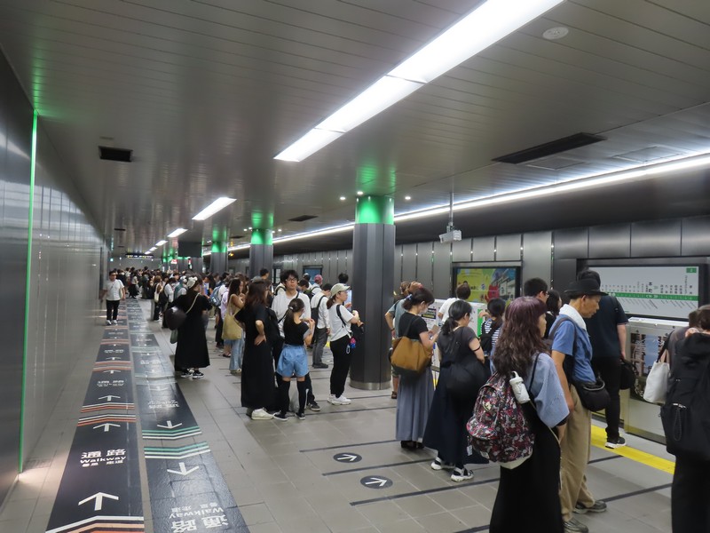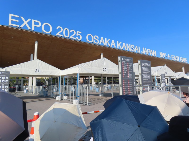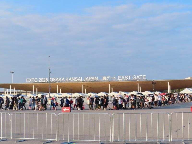 大阪・関西万博、24度目の訪問、単独入場、その後待ち合わせ。貴重な9時予約なので、もう慣れた阪急始発の三国駅で梅田駅へ。阪急電車も、西梅田までの連絡通路も、今までよりなんだか人が増えた気がする。それもミャクミャクをカバンに付けたような人たち、明らかに万博組。四つ橋線本町駅の乗り換えも明らかに人が増えているし、中央線ホームにも多くの人が待っている。とても始発とは思えないな。あと1か月を切り、この先の予約もしづらくなってきて多くの人がこの早朝からの入場を狙っているのだ。まああと少し、こちらもできるだけ頑張ろう。かなり混みあう電車だがなんとかポジションは確保し、いつも通り夢洲駅では開く方のドア前、すぐにダッシュできる状態。さあ、ここからが勝負、電車は夢洲駅に到着だ。