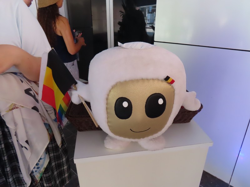 ということで、コモンズBでトイレ休憩してからベルギー館へと行こう。ここで合流し、早速並ぶ。この時間ならばすぐに入れそうだ。さて、数多くある海外パビリオン、このベルギー館ですべて訪問したことになる。やっとここまで来た、という感じ。しっかりと見ておきましょう。このパビリオンのコンセプトは「水」で1階が固体、2階が液体、3階が気体を表しているとのこと。屋上に見えた白く丸いものは気体のイメージだったんだ。なるほどね。数分ほどで入口まで来たぞ。ベルギーと言えばのシナモンクッキー・Biscoffをいただき、迎えてくれたのはマスコットのベルベル。エネルギーや好奇心、そして再生を表す小さな「細胞」とのこと。ある意味ミャクミャクとも近いコンセプトなのかな。中に入ると美しい緑と噴水の気持ちがいい空間。ゆっくりと深呼吸だ。
