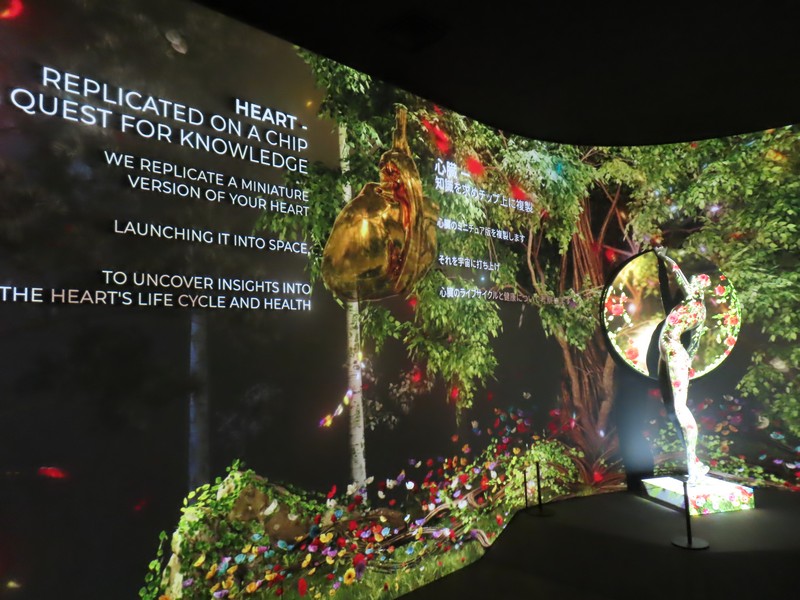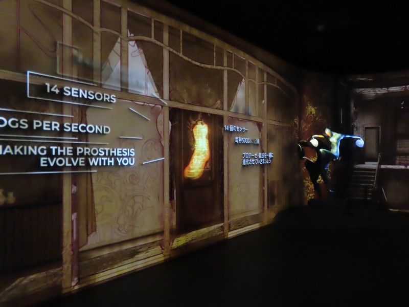 次の部屋では、ベルギー各地域の紹介。大きく南北に分かれていて、南部ワロン地域(Wallonia)はフランス語とドイツ語が話され、工業が発達している。北部フランダース地域(Flanders)はフランス語が話され、フラマン語というオランダ語の方言も話されている地域。昔訪問したブルージュやアントワープはこの地域。そして中央部分がブリュッセル首都圏地域。NATO本部があり、ヨーロッパの中心の一つとされる都市。こう見ると、ワロン地域って行ったことないな。リエージュとなナミュールとか、機会があれば行ってみたいものです。それぞれのエリア図がお茶碗に金継ぎの形で表現されているのがいい感じ。先に進むと、再びヘルスケア関連の展示。心臓、脳、筋肉、消化器などの活動について、四季それぞれのイメージに合わせて説明されている。心臓や消化器は夏、脳は秋なんだ。最後の部屋では、義足についての映像展示。自然な動きができるように、可動域やセンサーなど工夫がされている。ベルギー館の展示はここまで、ほぼヘルスケアや医療関係の内容だったのはちょっと意外だったが、ベルギーがこの分野で世界をリードしていることは知らなかったしいろいろと勉強になりました。興味深かったです。